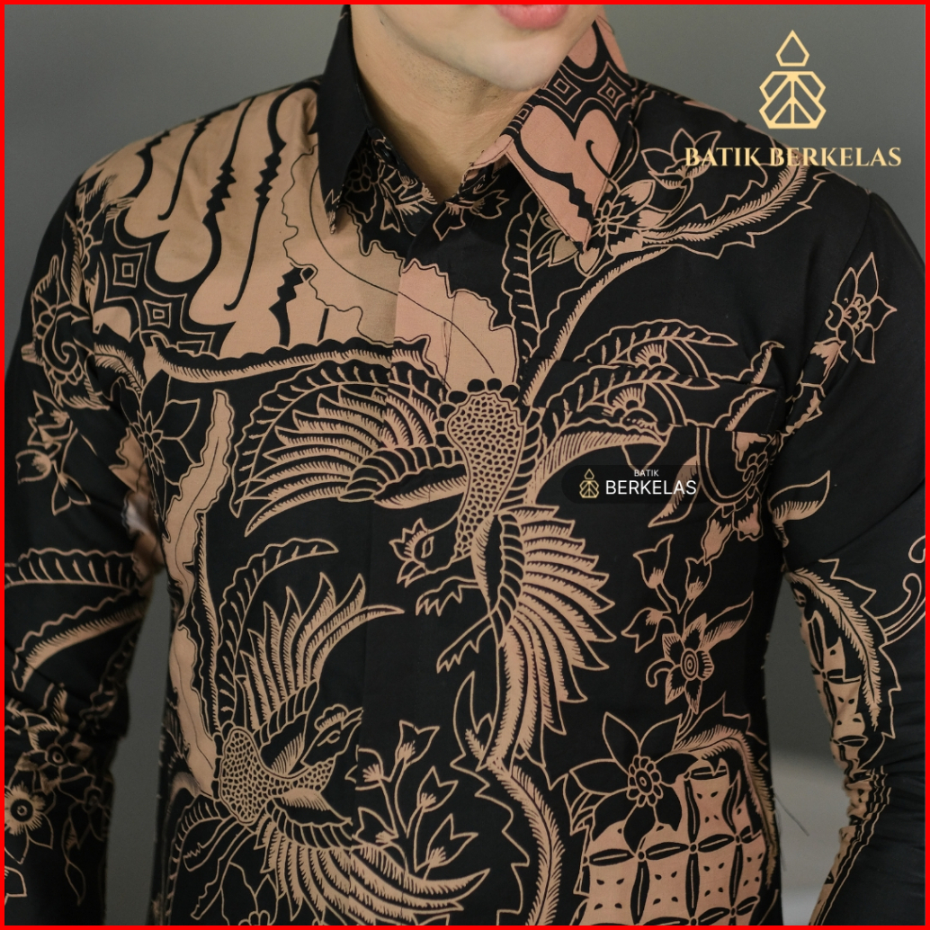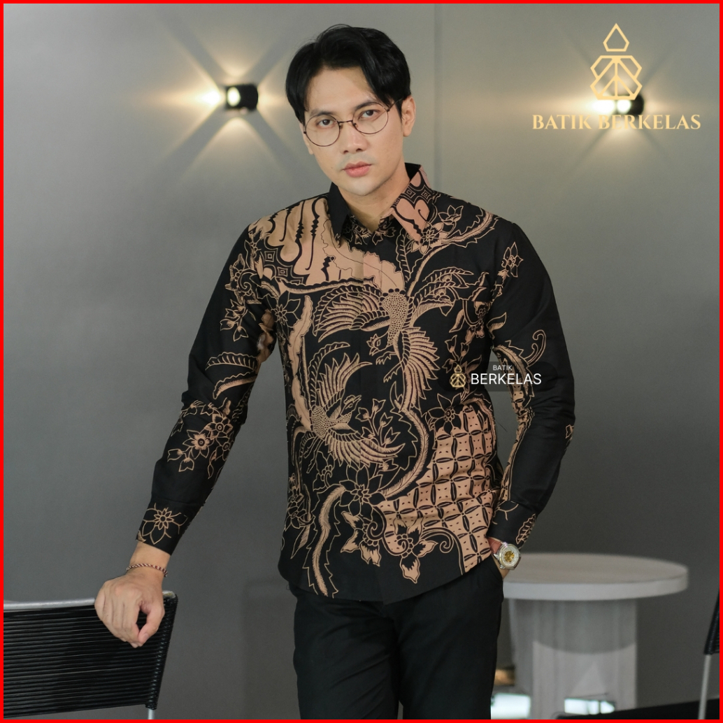 Batik Berkelas Cakra Hitam Kemeja Batik Pria Slimfit Lapis Furing Katun Elegan Lengan Panjang Untuk Kondangan Lamaran Ka