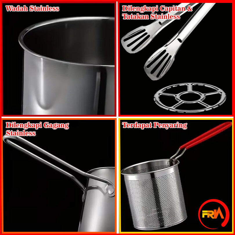 Frn Kitchenware - Panci Multifungsi 4 In 1 Multi Panci Deep Fryer Set Panci Penggorengan Rebus Stainless Steel Saringan