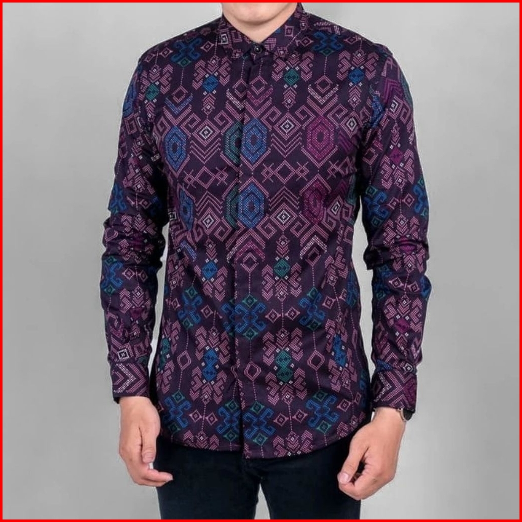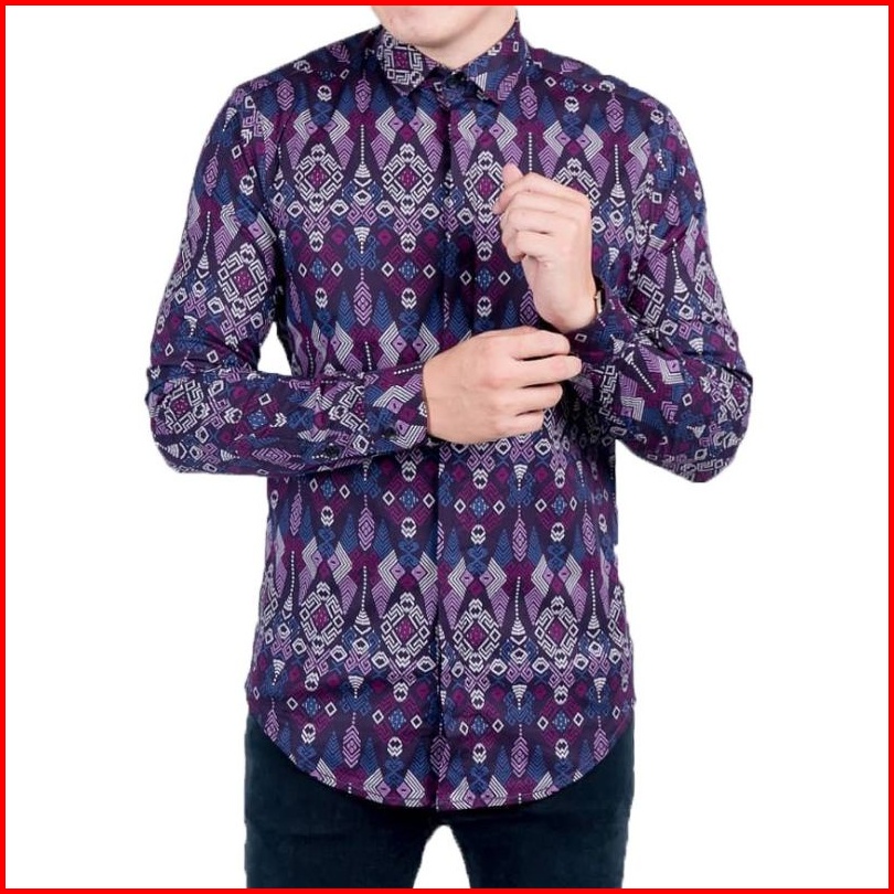 Ready Jumbo Hem Kemeja Batik Songket Pria Lengan Panjang Fashion Cowok Motif Keren Cotton Streath