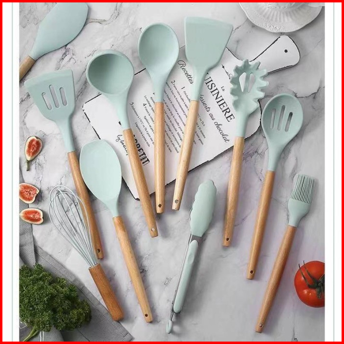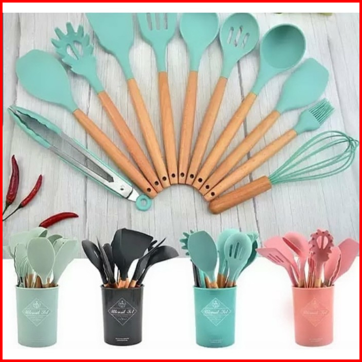 12 In 1 Spatula Silikon Tahan Panas Utensil Set 12 In 1 Alat Masak Set Sodet Set Spatula 12 In 1 Silikon Anti Panas Pera