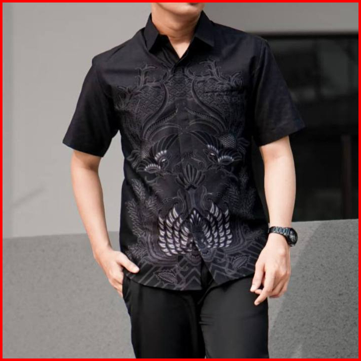 Baju Batik Pria Lengan Pendek Modern Casual Modis Regular Fit Trendy Motif Terbaru Batik Sarjana