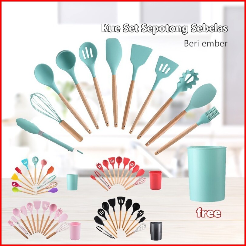 Ready Stok Sutil Silikon Spatula Silicone Sodet Alat Masak Set 12pcs Vs-1809
