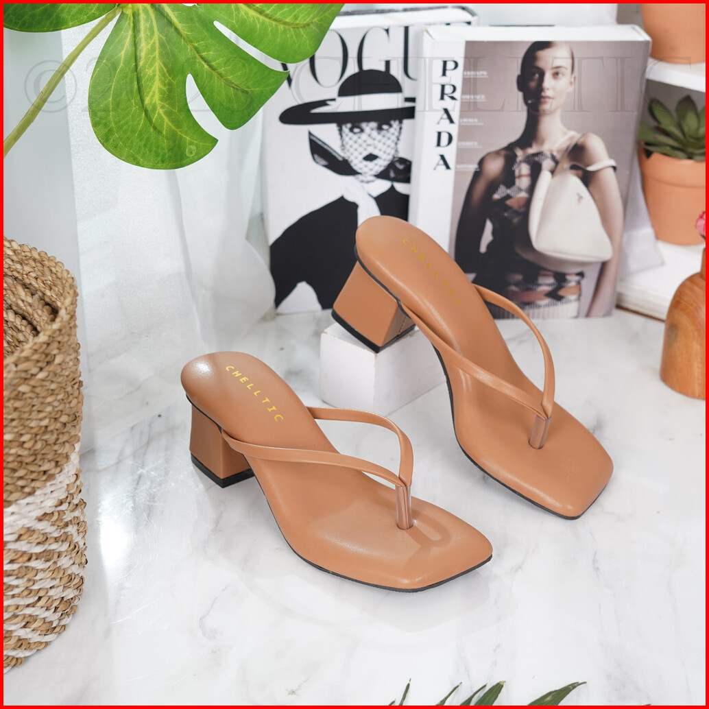 Chelltic Sandal Wanita Hak Tahu Tali Jepit Sendal Heels 5cm Elegan Warna Hitam Cream Mocca Fuschia Premium Series Sepatu