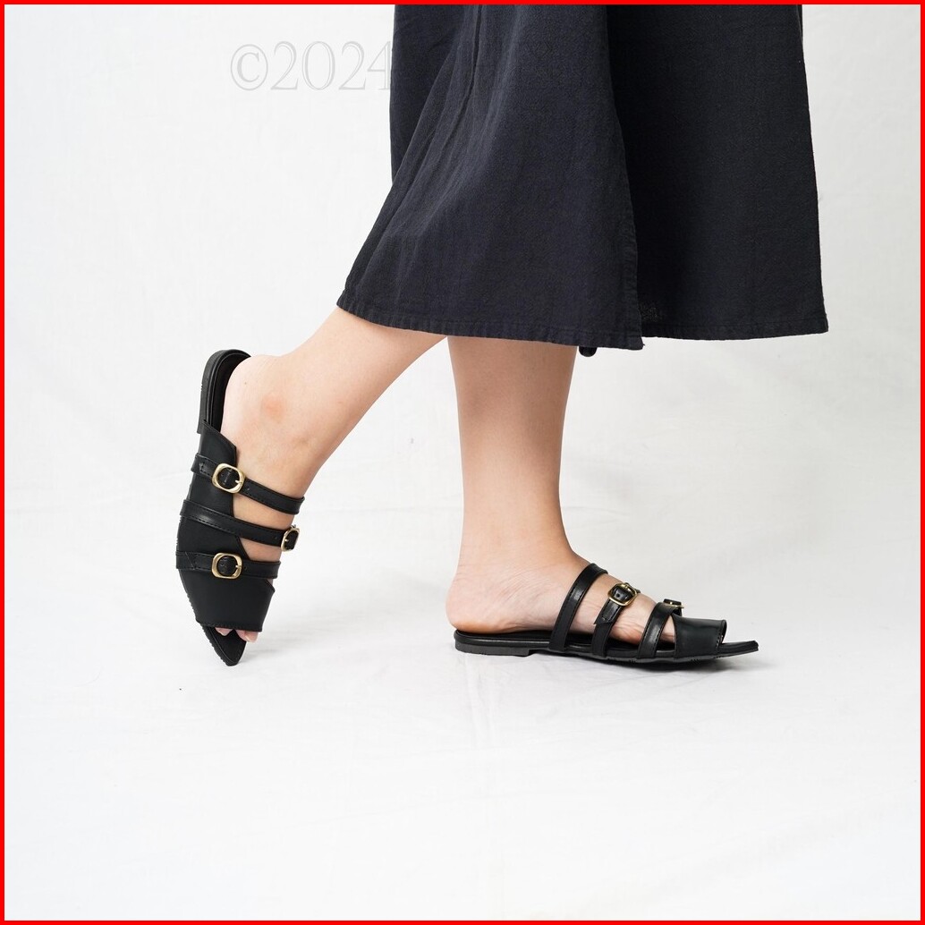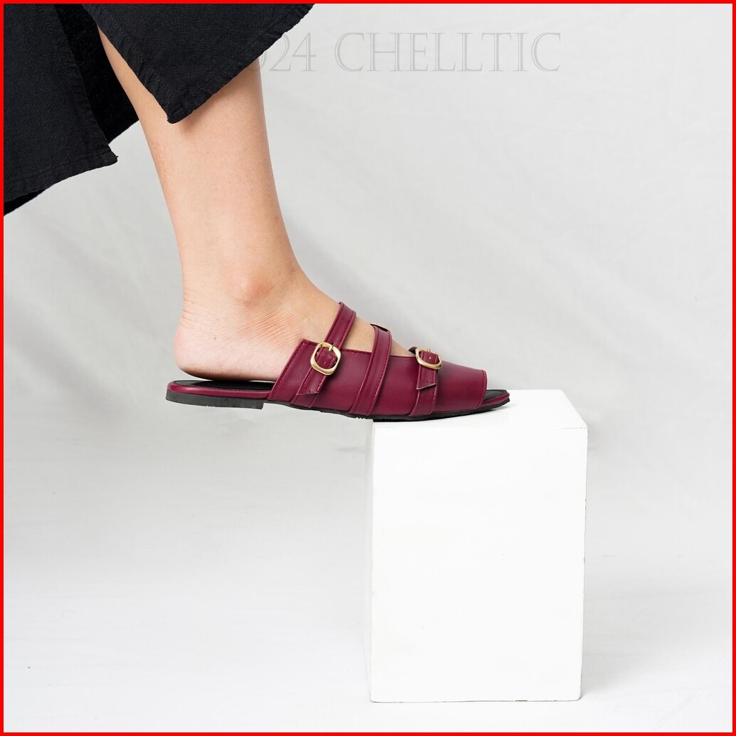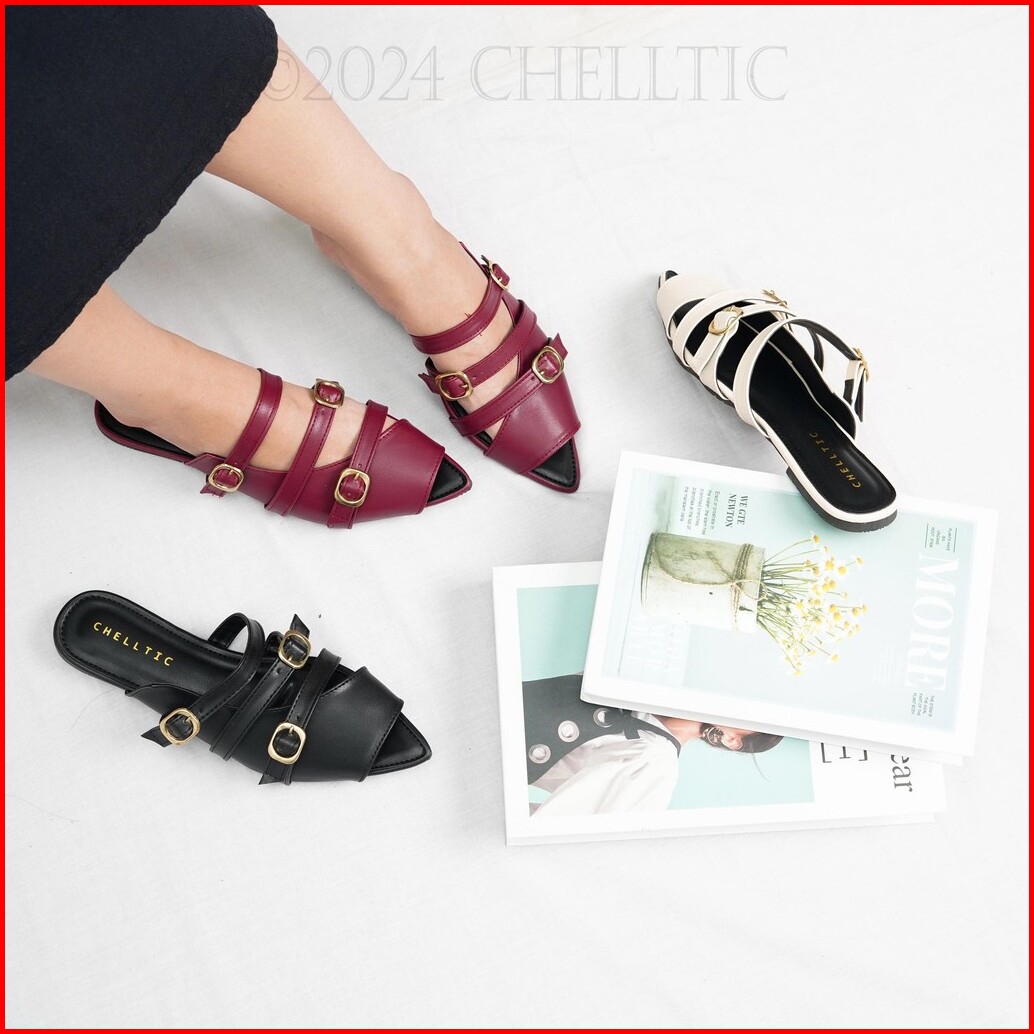 Chelltic Sandal Wanita Mules Terbaru Sepatu Wanita Elegan Party Cewek Korea Sendal Flatshoes Slip On Sndal Pesta Princes
