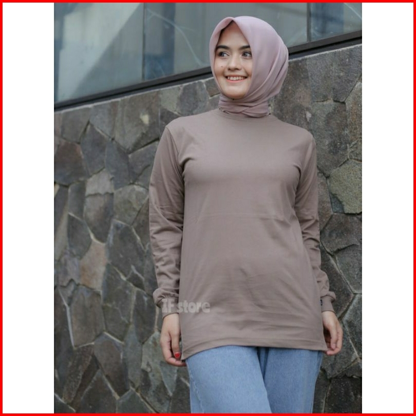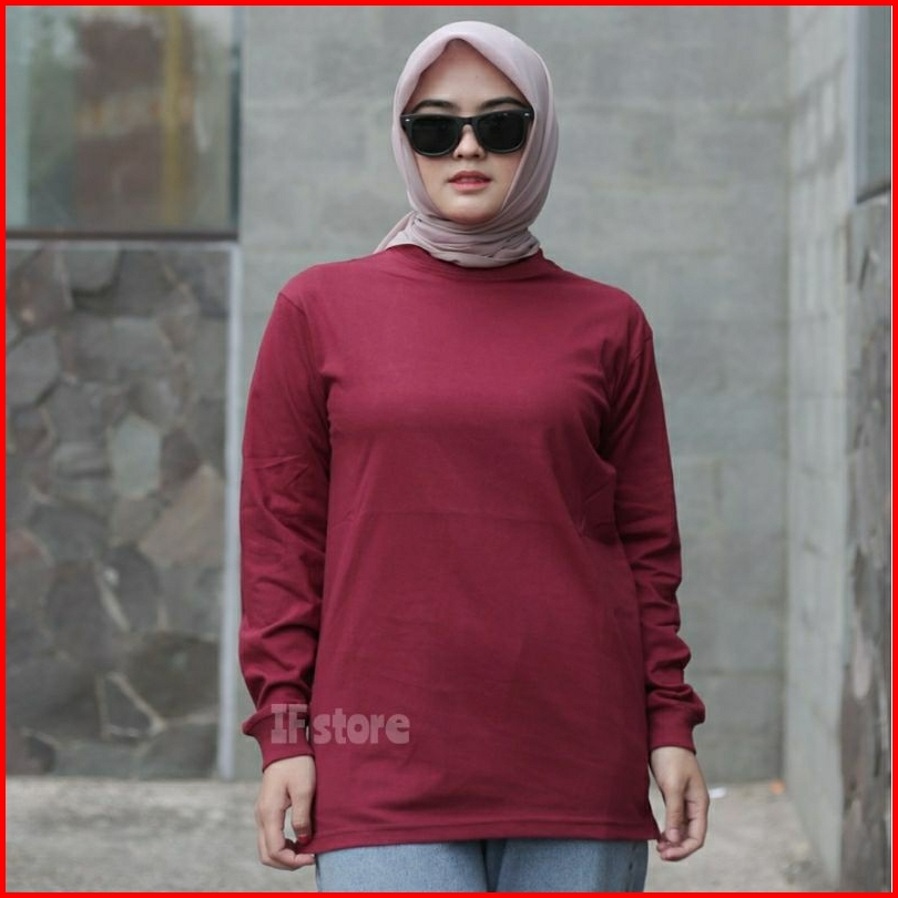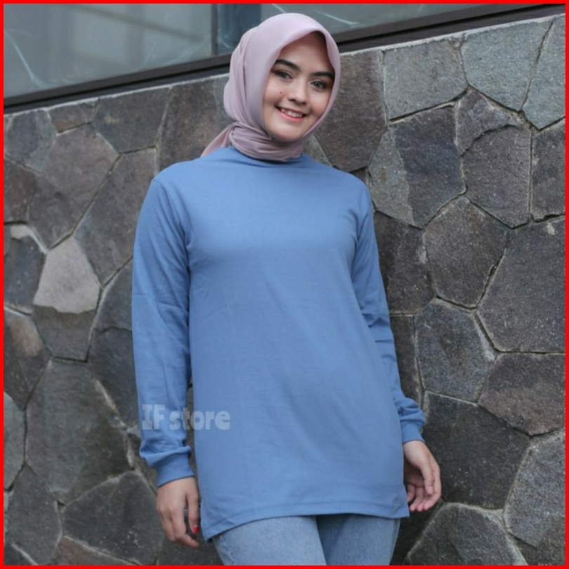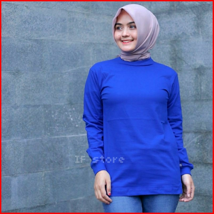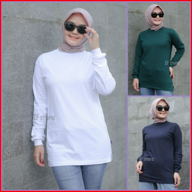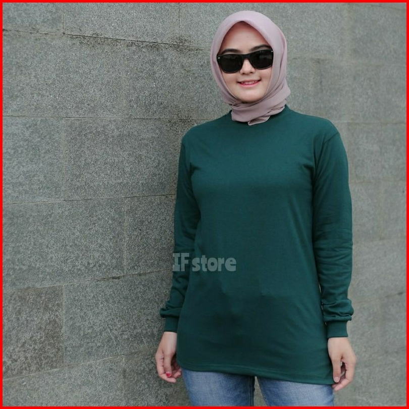 Kaos Polos Lengan Panjang Wanita Bahan Katun Adem Tebal