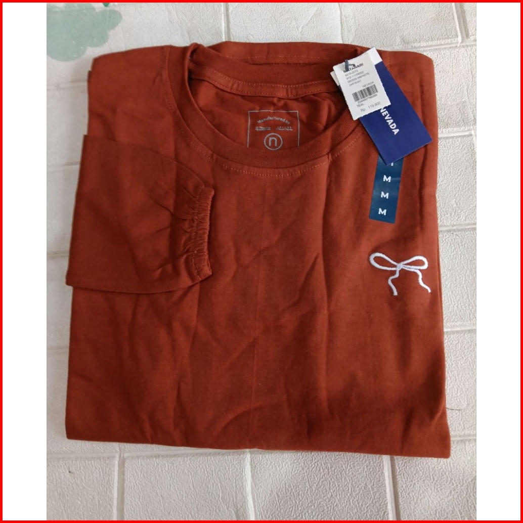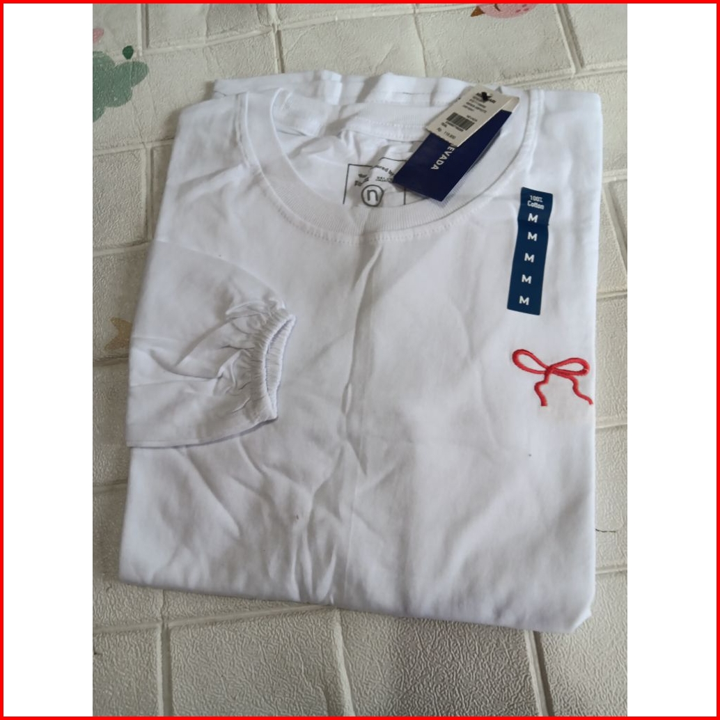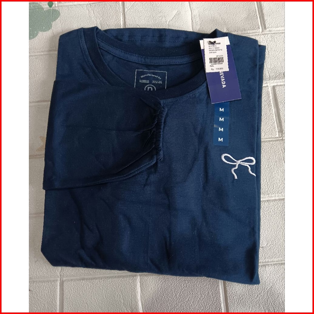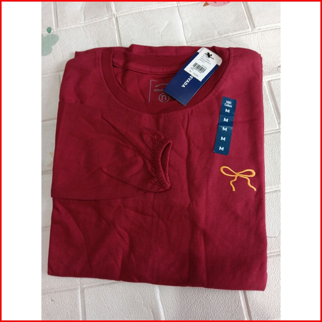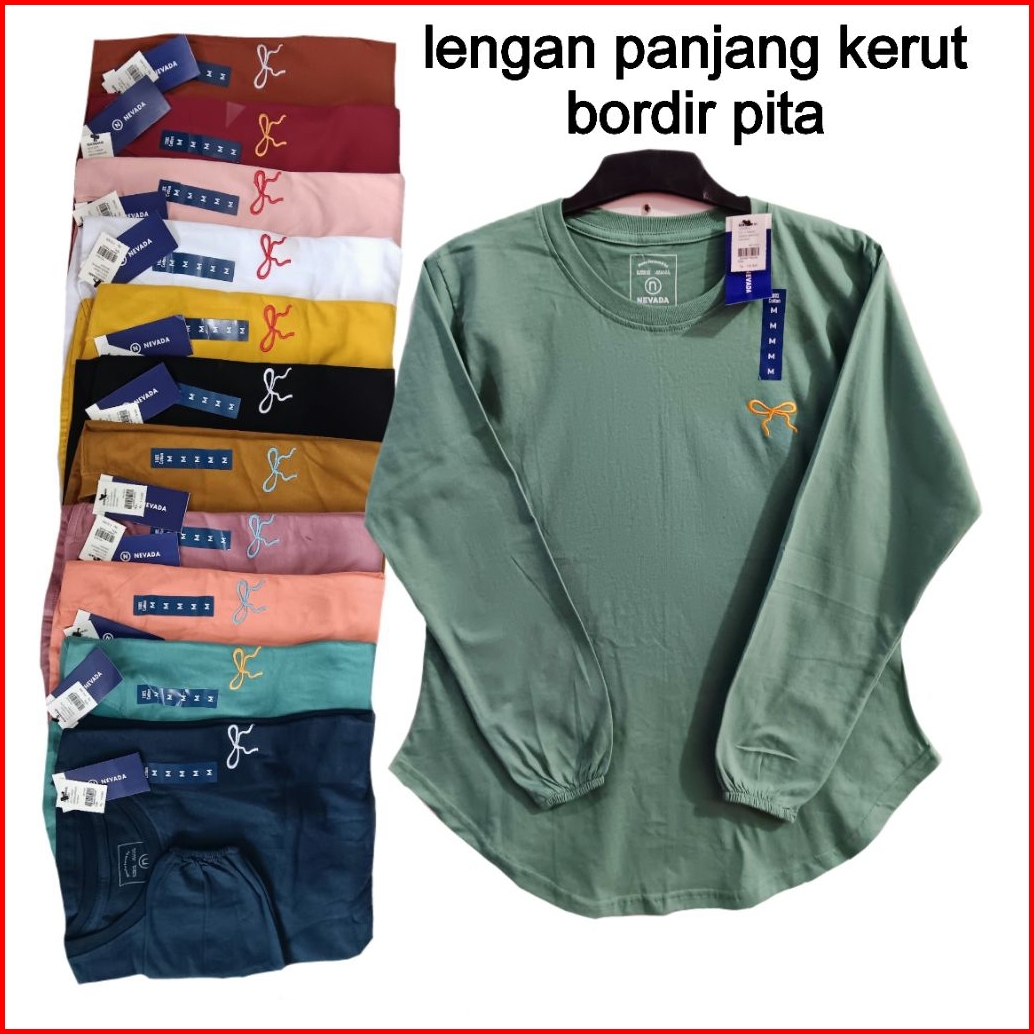 Kaos Wanita Lengan Panjang Kerut Bordir Pita Katun Combed24s