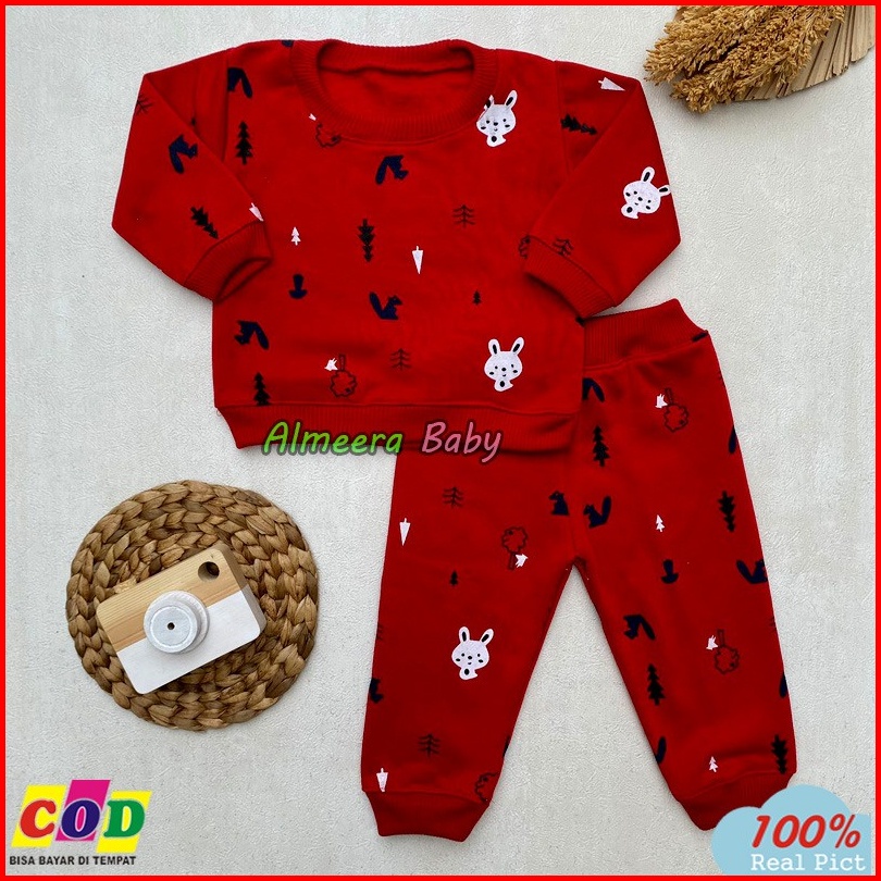 Setelan Sweater Bayi Celana Jogger Bayi Usia 3-12 Bulan Motif Rabbit Almeera Baby And Kids
