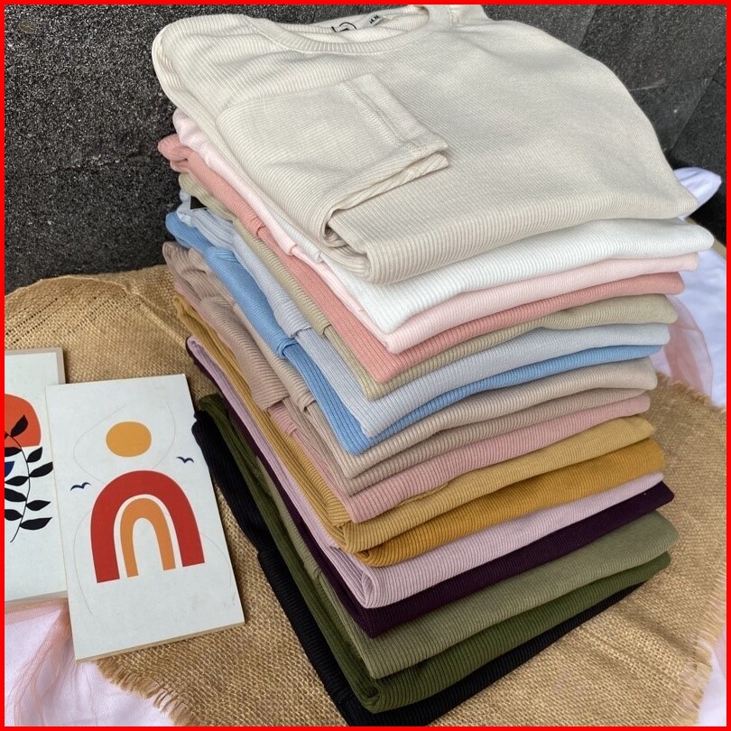 Kaos Rib Oblong Premium Polos Lengan Panjang Kaos Rib Polos
