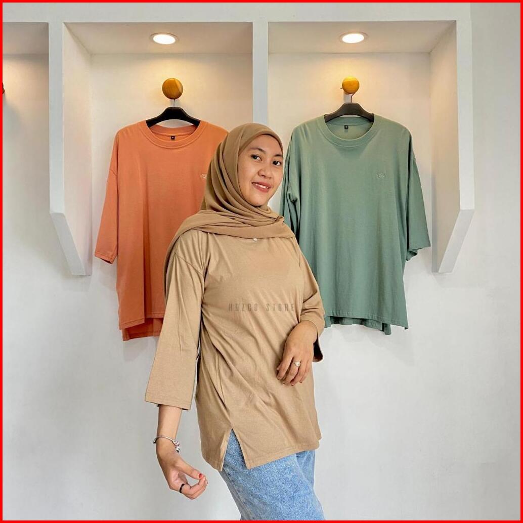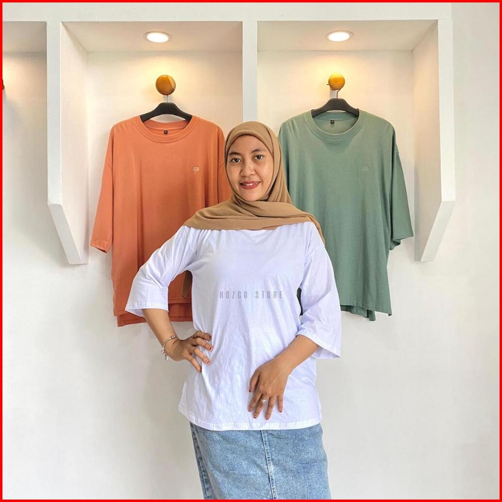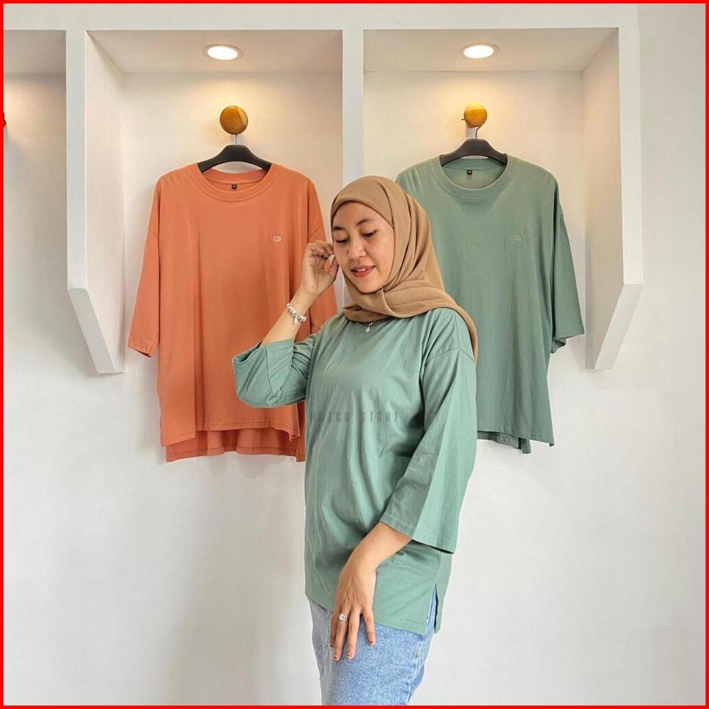 Kaos Oversize Hijab Style Lengan 7 8 Kaos Wanita Kekinian Kaos Wanita Katun Combed Premium 24s