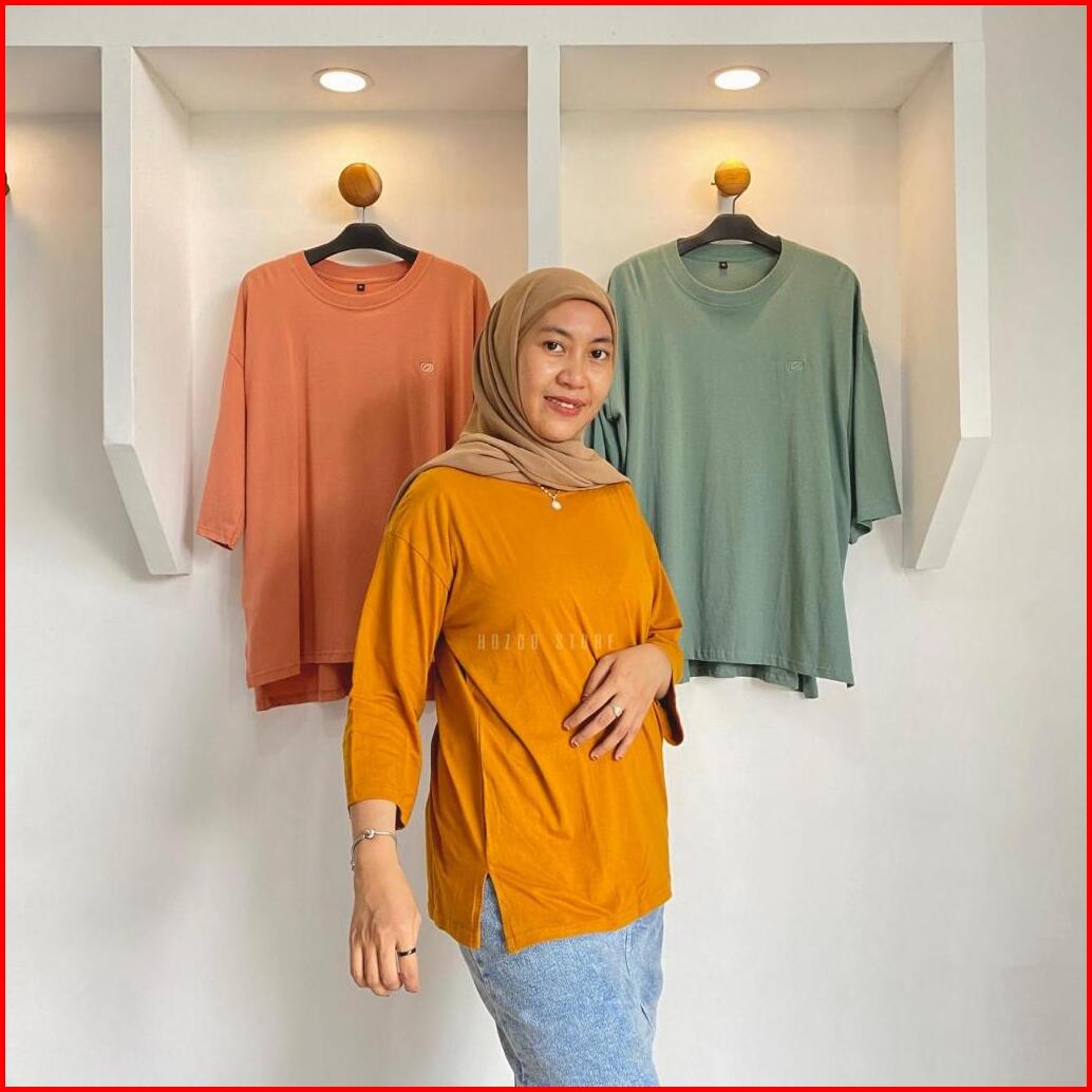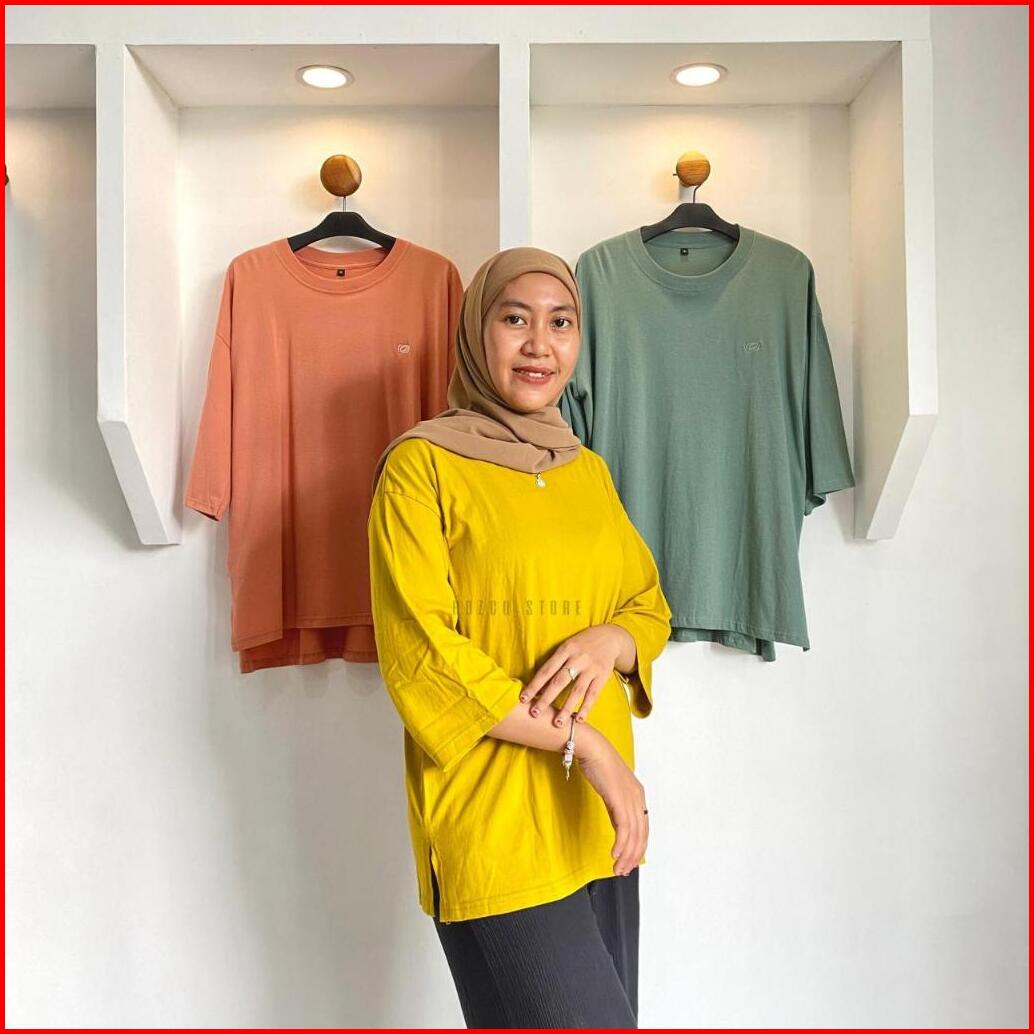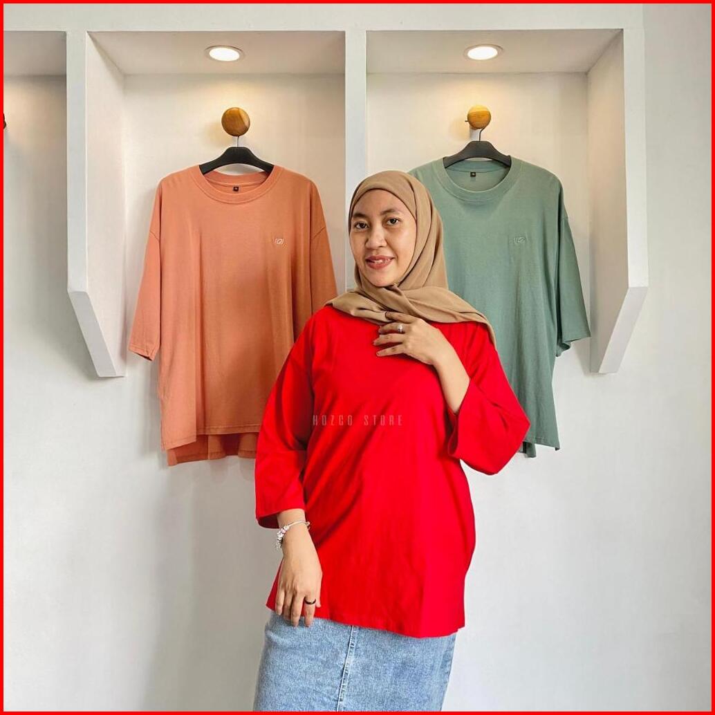 Kaos Oversize Hijab Style Lengan 7 8 Kaos Wanita Kekinian Kaos Wanita Katun Combed Premium 24s