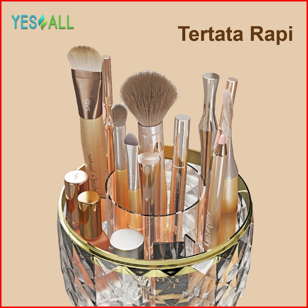 Yesall Rak Kosmetik Makeup Crystal Transparan Aesthetic Rak Kosmetik Putar 360 Derajat Aesthetic Tempat Sendok Garpu Ter