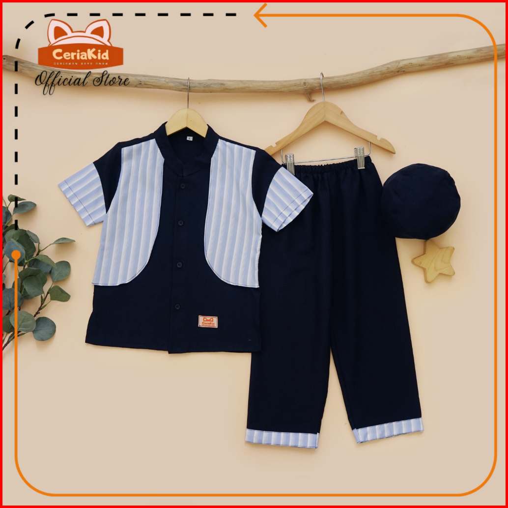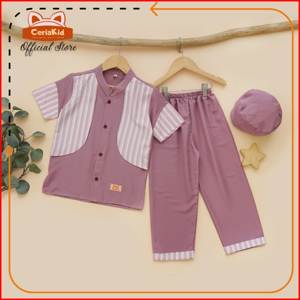 Baju Koko Anak Set Celana Plus Peci Edisi Emirat 0-9 Tahun