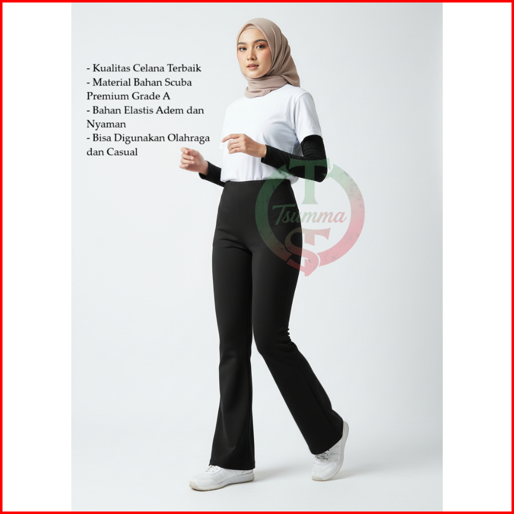 Celana Scuba Premium Olahraga Wanita Highwaist Adem Tebal Elastis Yoga Lari