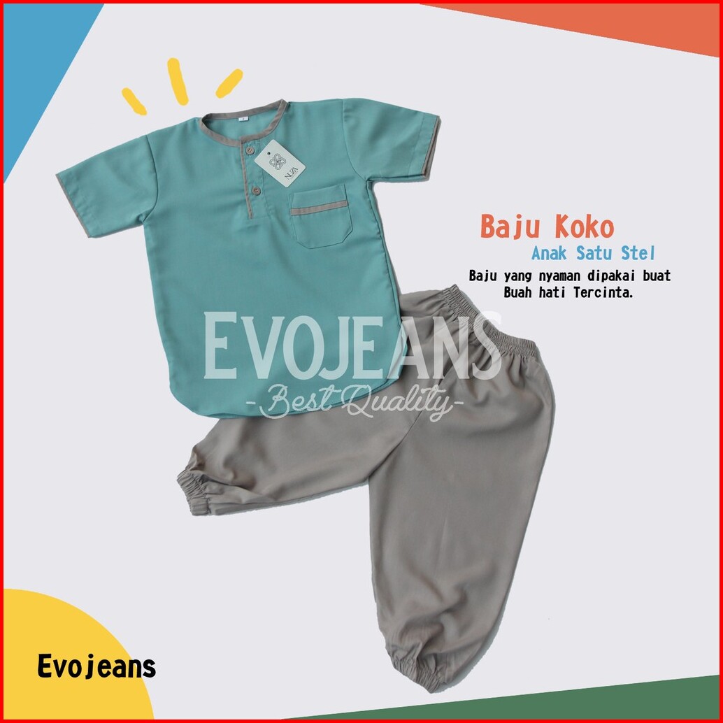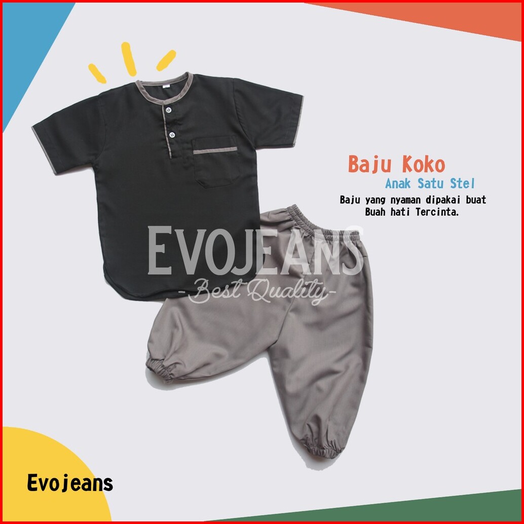 Grosir Baju Koko Anak Setelan Baju Dan Celana Umur 0-6 Tahun Bahan Toyobo Premium Adem Lembut - Evo