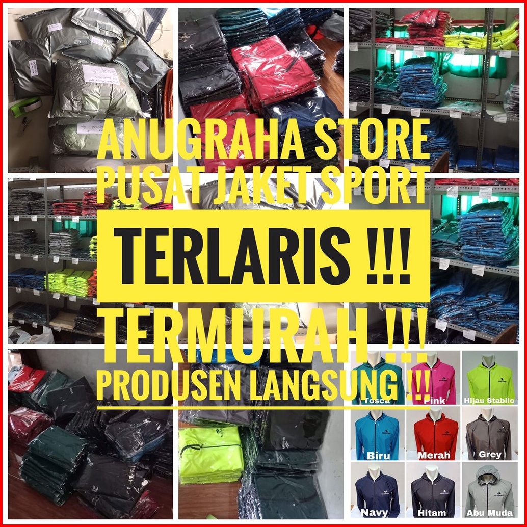 Jaket Olahraga Parasut Lari Jogging Sepeda Running Sport Pria Wanita Warna Hitam Bahan Premium