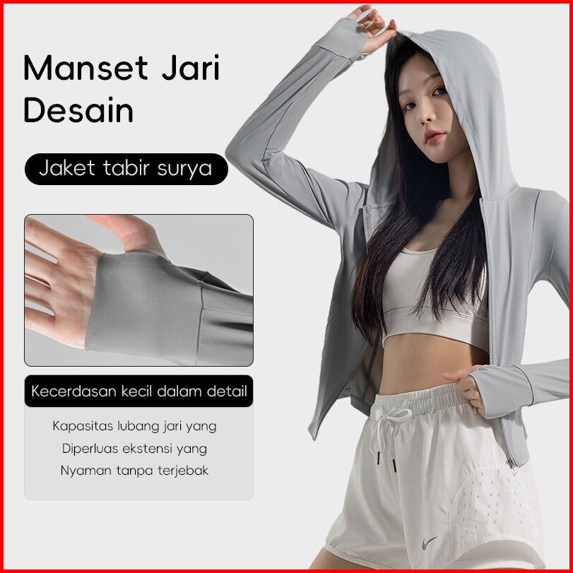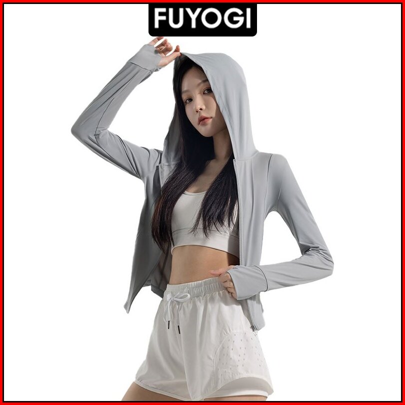 Fuyogi Jaket Anti Uv Olahraga Wanita Ice Silk Breathable Hooded Pelindung Matahari Baju Cepat Kering