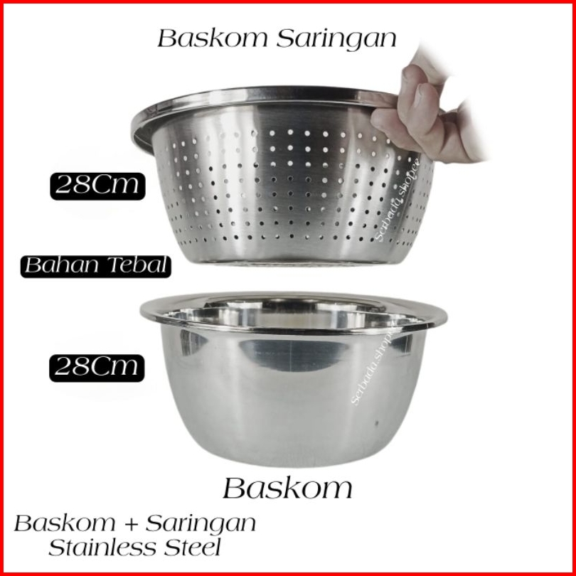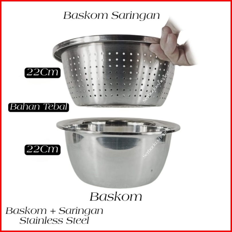 Baskom Saringan Set 2in1 Stainless Tebal Serbaguna Berkualitas Baskom Peniris Minyak Beras Sayuran