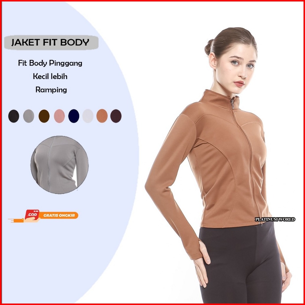 Jaket Olahraga Lengan Panjang Fit Body Wanita Yoga Pilates Lari Gym Fitnes Premium Quality S59