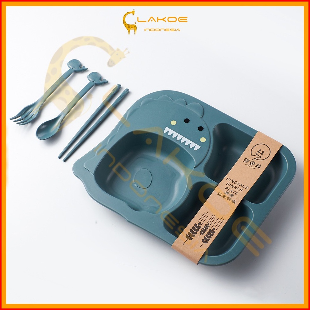 Lakoe Set Piring Makan Anak Dino 4in1 Set Alat Makan Anak Dino 4in1