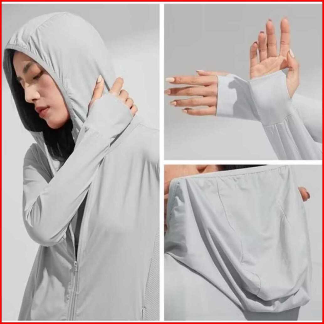 Jaket Olahraga Sun Protection Dry Fit Anti Uv Lari Fitness Gym Yoga Bahan Mesh Cepat Kering Dengan Hoodie Resleti