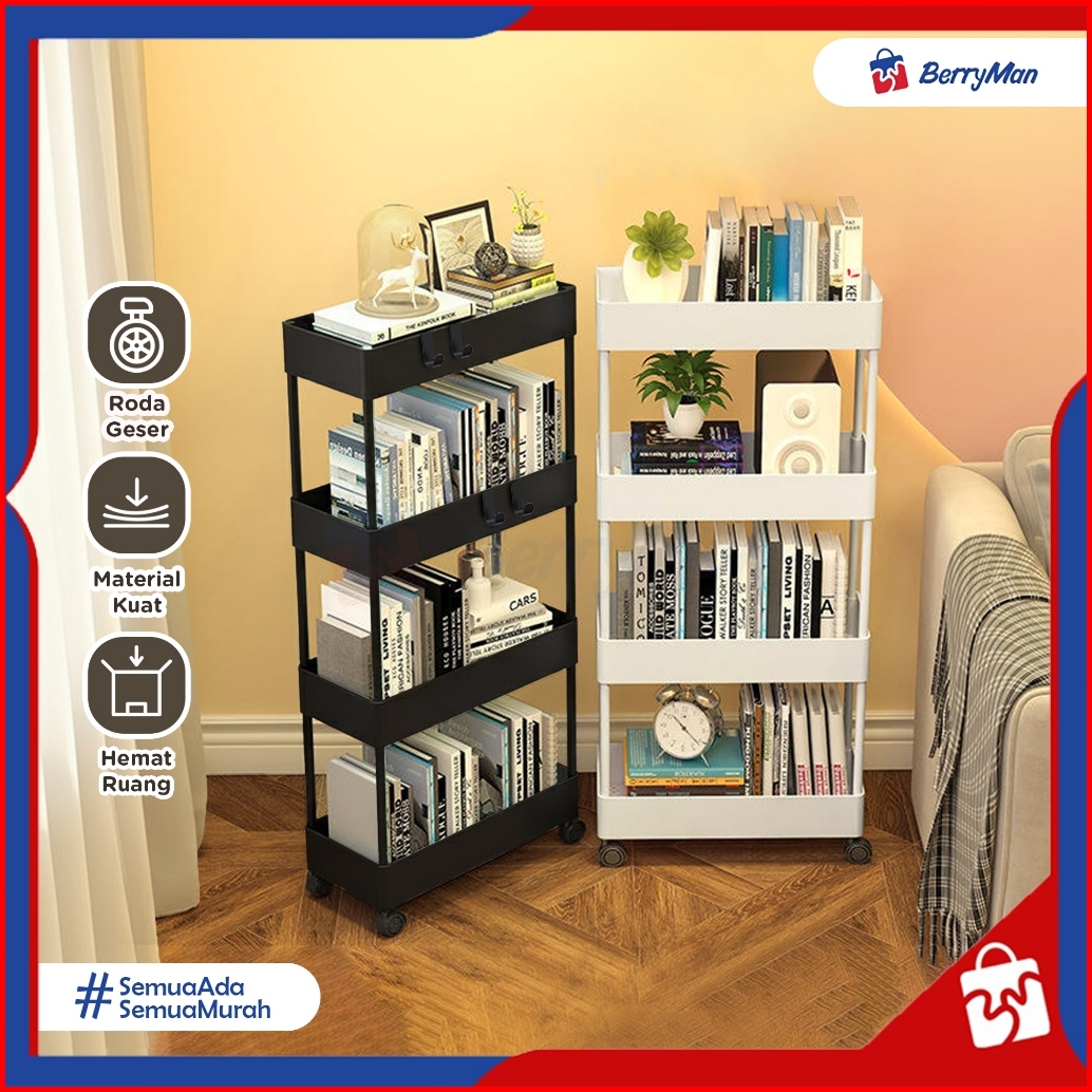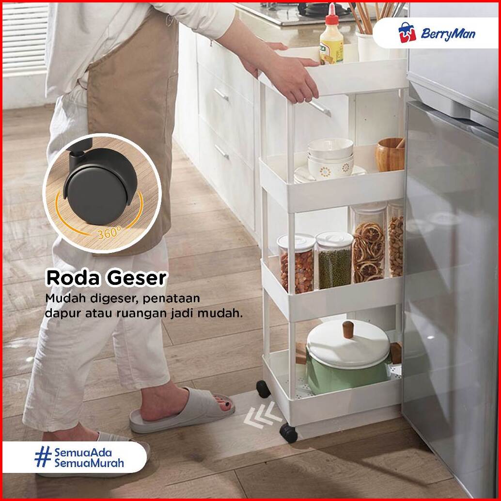 Rak Yumi Dapur Plastik Persegi 4 Susun Tempat Penyimpanan Square Portable Serbaguna Dengan Roda