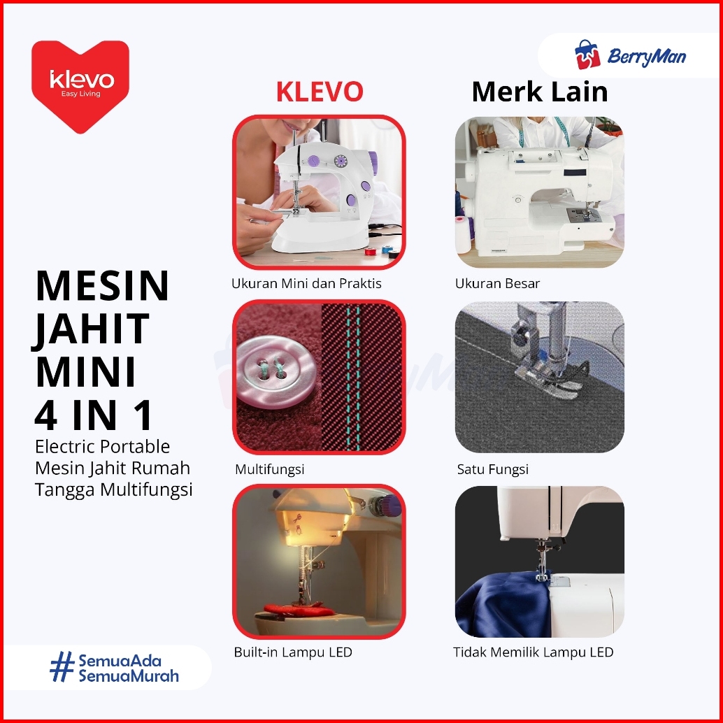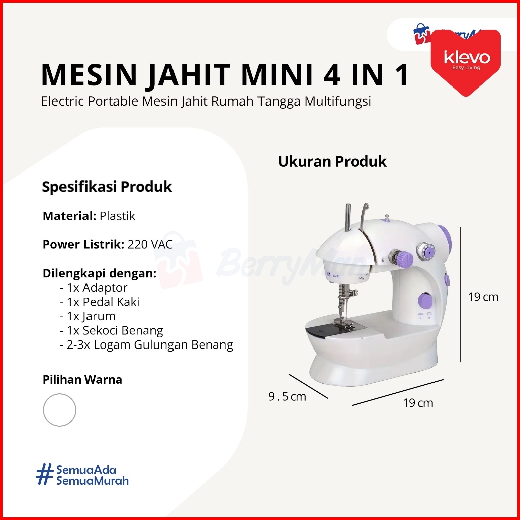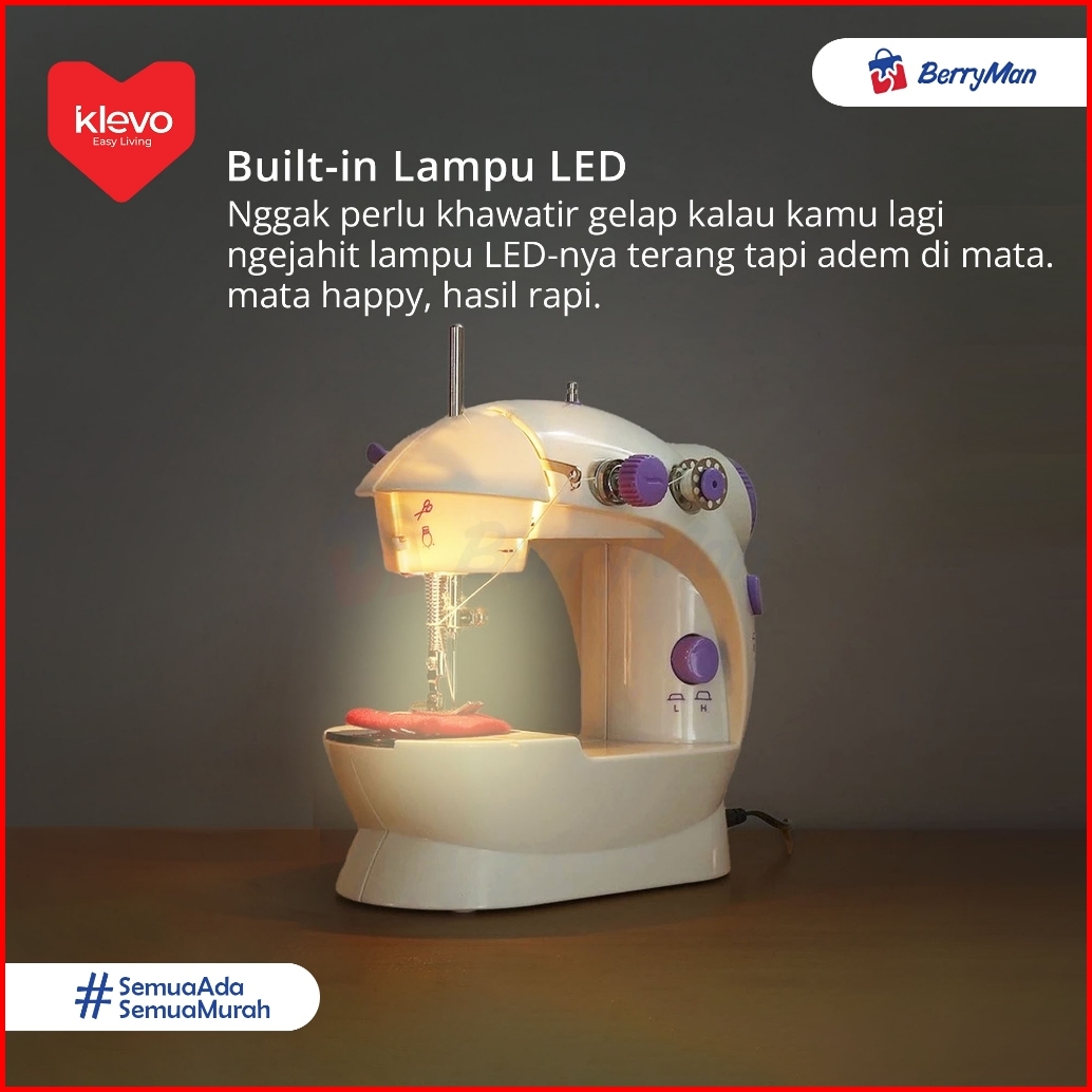 Klevo Mesin Jahit Mini 4 In 1 Elektrik Portable Lampu Led Mesin Jahit Rumah Tangga Multifungsi