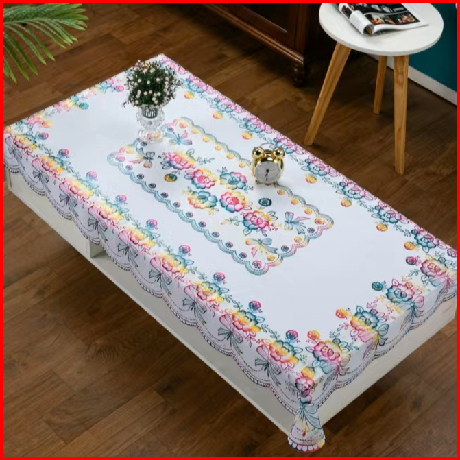Taplak Meja Pvc Persegi Panjang Motif Bunga Anti Air Ukuran 90x150 Cm - D-a Elegance