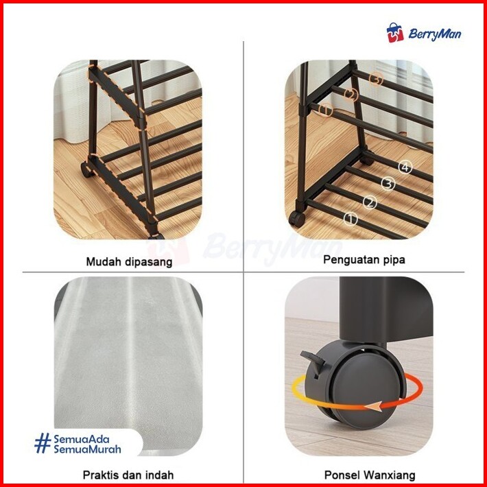 Rak Yumi Triangle Gantungan Baju Minimalis Serbaguna 2 Tingkat Dengan 4 Roda Stand Hanger Modern