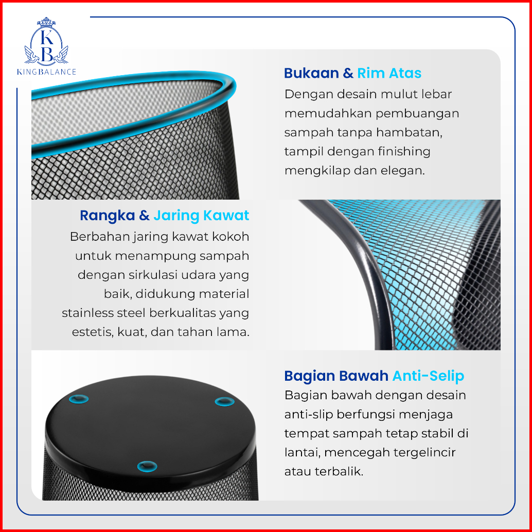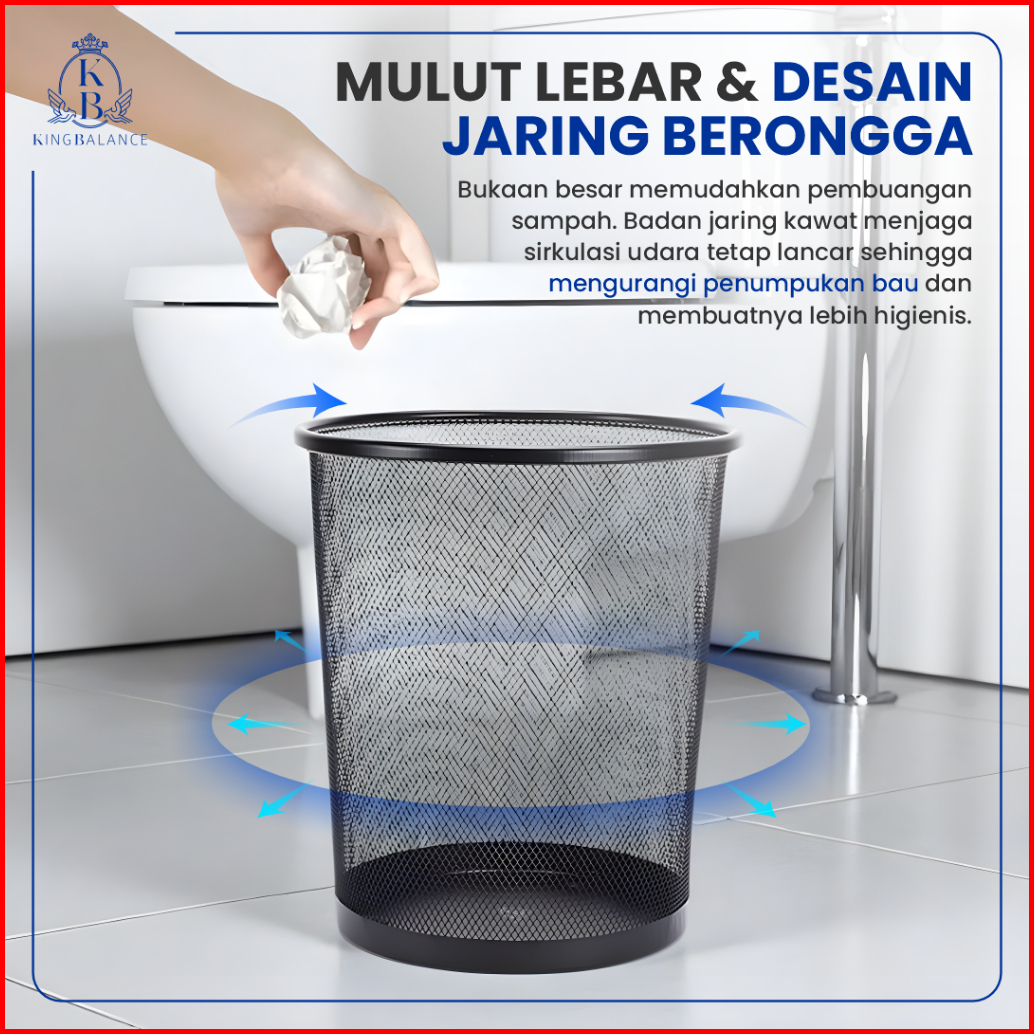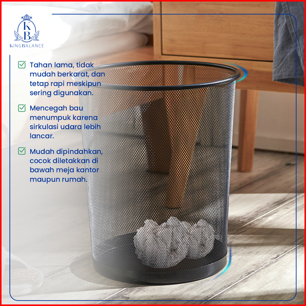 King Balance Tong Sampah Jaring Besi Hitam - Tempat Sampah Elegan Kantor Restoran - Keranjang Baju Kotor Mh04