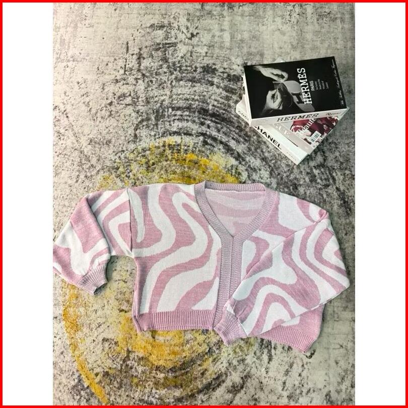 Outer Cardigan Crop Top Zebra Rajut Komputer Motif Abstrak Knitwear Premiun