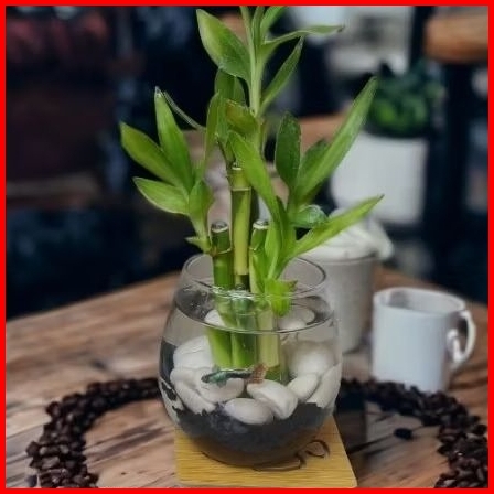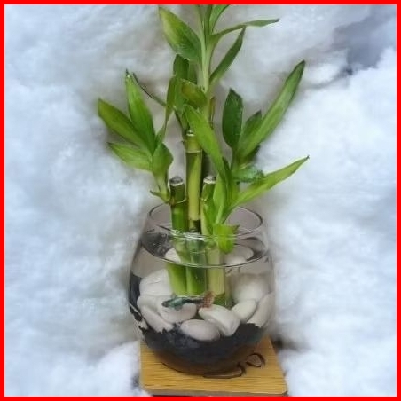 Paket Lengkap Bambu Hoki Asli Hidup Plus Vasquarium Mini Hiasan Cantik Unik