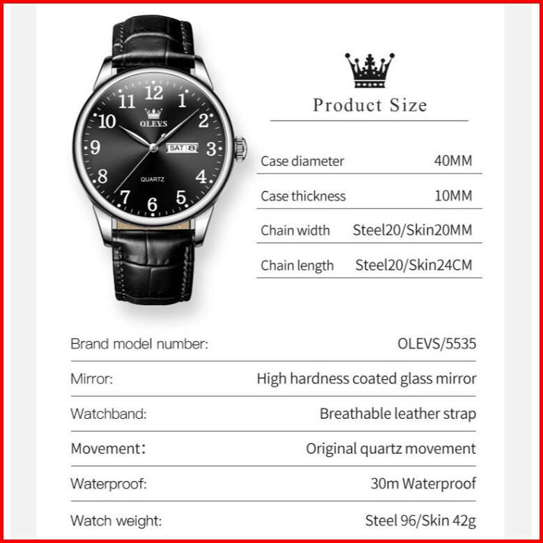 Olevs Jam Tangan Pria Anti Air Original 100 Casual Men Watches Analog Kuarsa Tali Kulit 5535