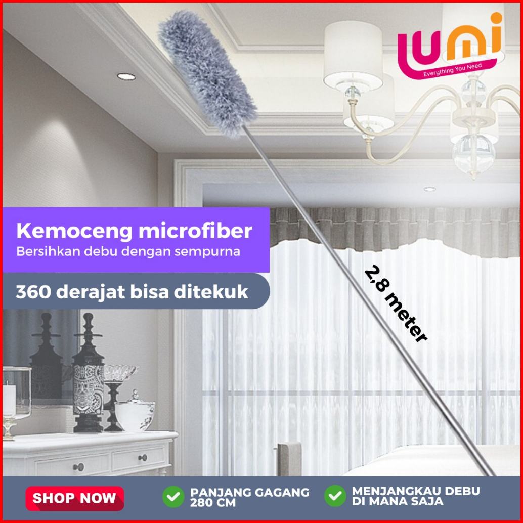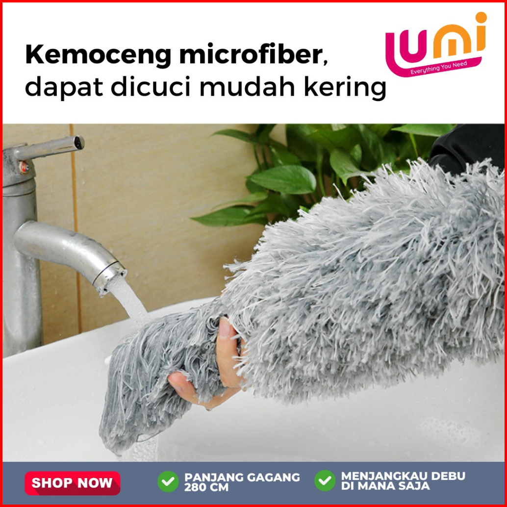 Kemoceng Teleskopik Pembersih Debu Gagang Panjang 2.8 Meter Sapu Microfiber Teleskopik Flexible Bisa Ditarik Ditekuk Ala