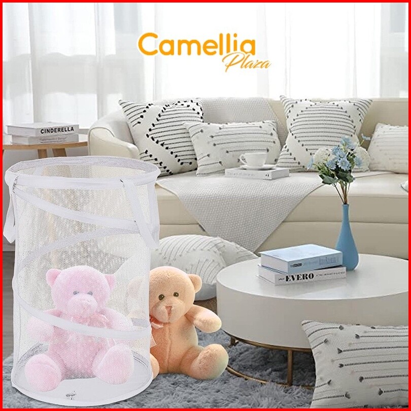 Keranjang Pakaian Lipat Jaring Kotor Laundry Bag Baju Cucian Kantong Bulat