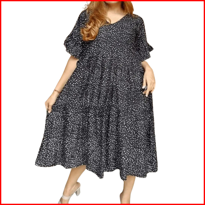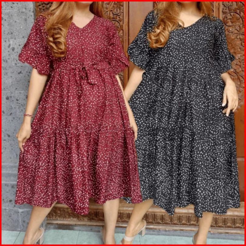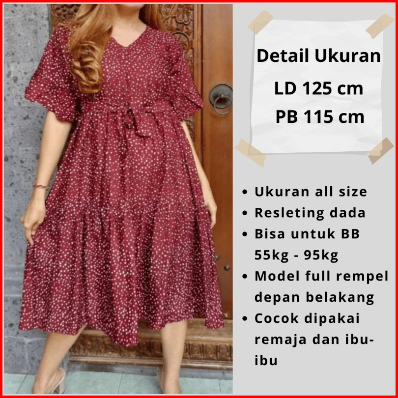 Daster Kekinian Terbaru Midi Dress Jenima Busui Jumbo Motif Polkadot Bahan Rayon Premium Tali Samping