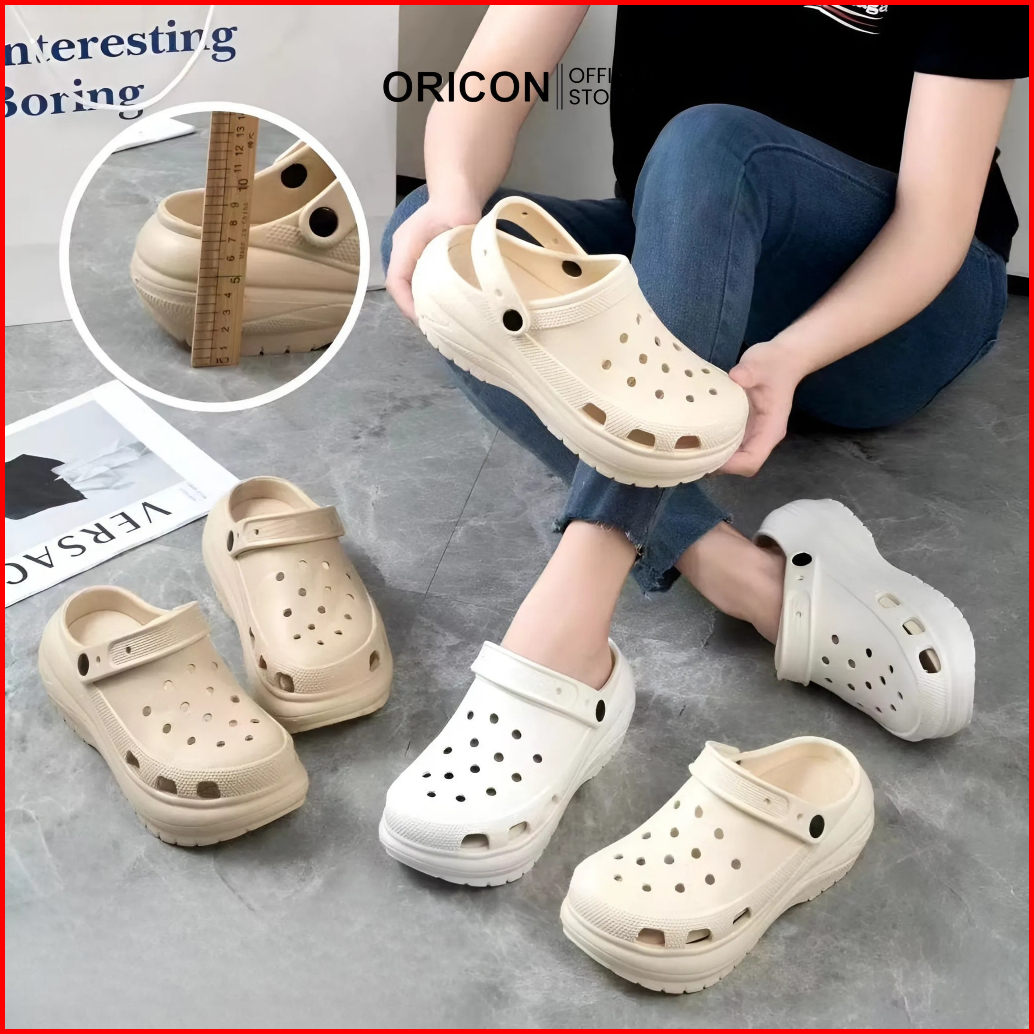 Sandal Crocs Polos Baim Wanita Dewasa Remaja Wedges Tinggi 7cm Casual Bahan Premium Outdoor Ringan