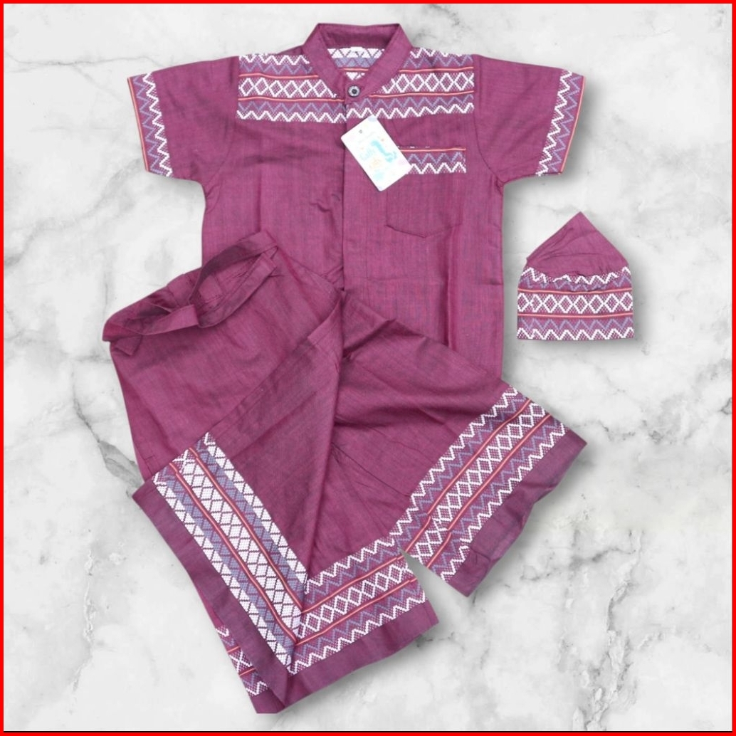 Setelan Koko Anak Sarkoci Sarung Koko Peci Usia 1 - 14 Tahun