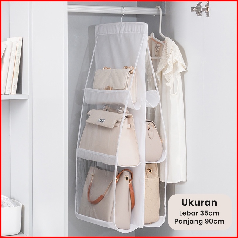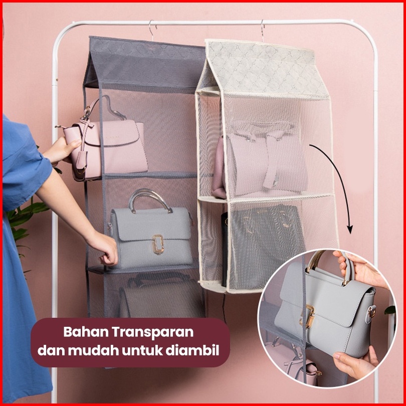 Dejavu Rak Tas Gantung Mika Susun Tempat Penyimpanan Tas Anti Debu Organizer Bag Storage Box Rak Gantung Sepatu Transpar