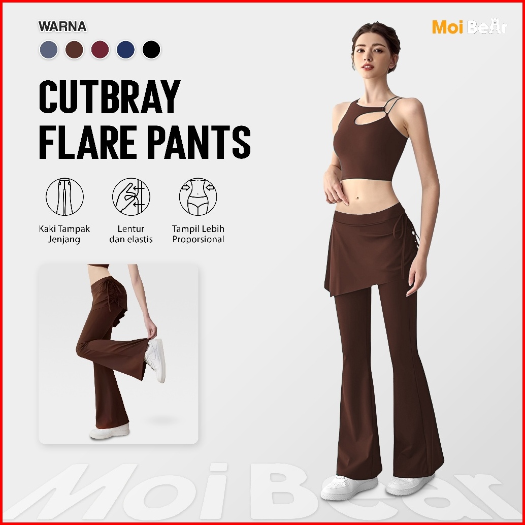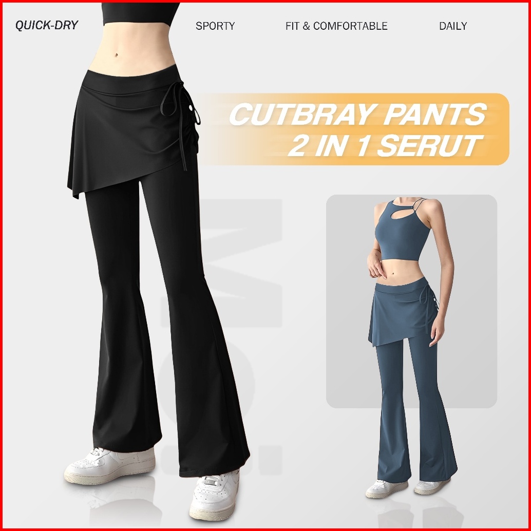 Moi Legging Cutbray Celana Rok Olahraga Wanita 2 In 1 Stretch Fleksibel Modis Untuk Yoga Pilates Gym Sporty Fit Pants