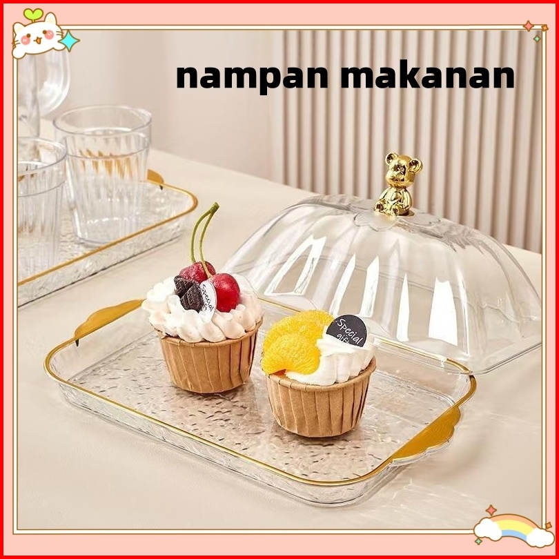 Food Tray Nampan Saji Transparan Aesthetic Dengan Tutup Wadah Buah Tempat Roti Wadah Saji Tray Makanan