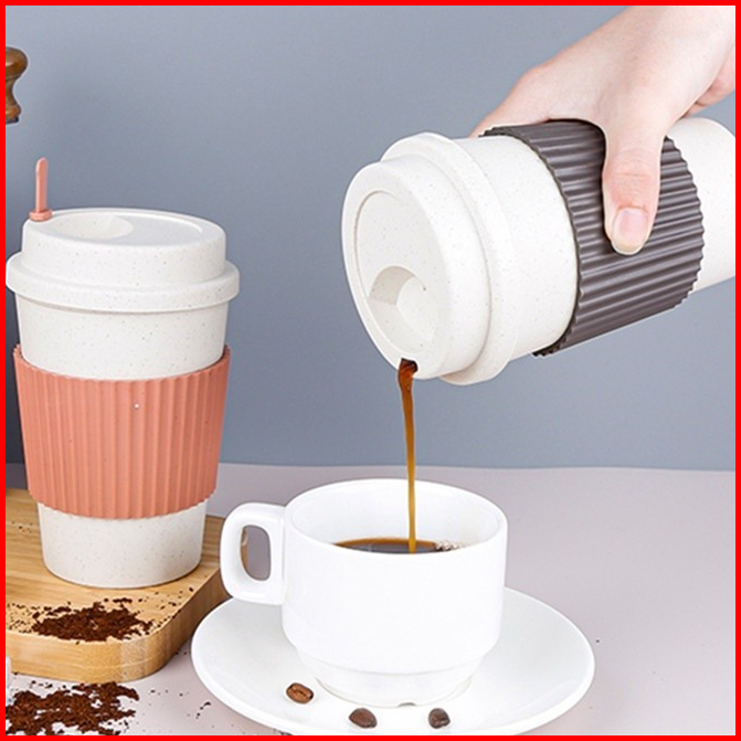 Velle 500ml Wheat Straw Mug Kopi Praktis Coffee Cup Mug Minuman Dingin Mug Minuman Panas Mug Plastik Portabelc