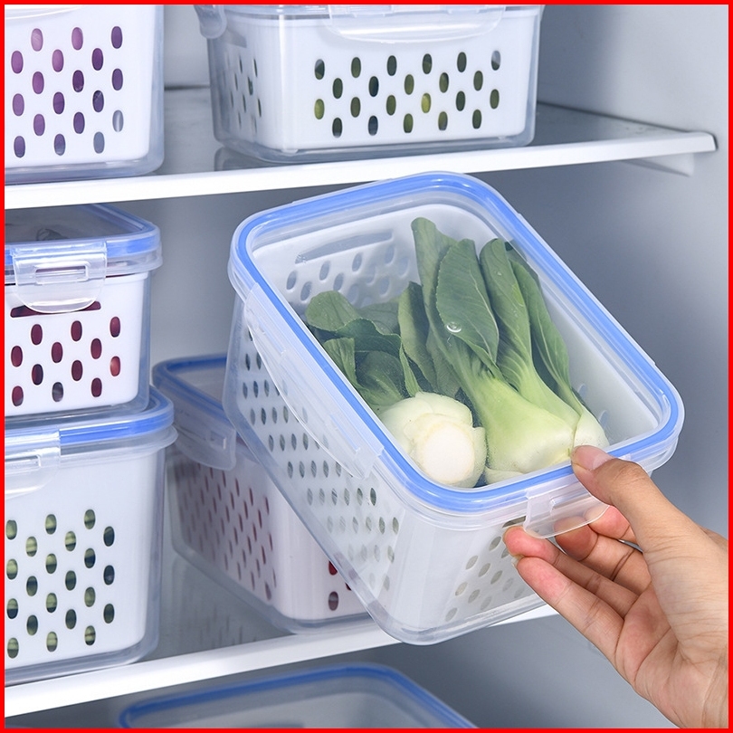 Paket 2 Set 6 Pcs Tempat Penyimpanan Makanan Dengan Qsaringan Mangkuk Tiris Makanan Keranjang Tiris Sayuran Dan Buah Kot
