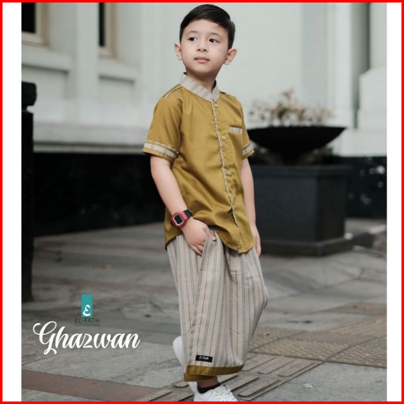 Setelan Pakaian Anak Model Sarcel Ghazwan Sarung Celana Dan Baju Koko 1-12 Tahun Lengan Pendek