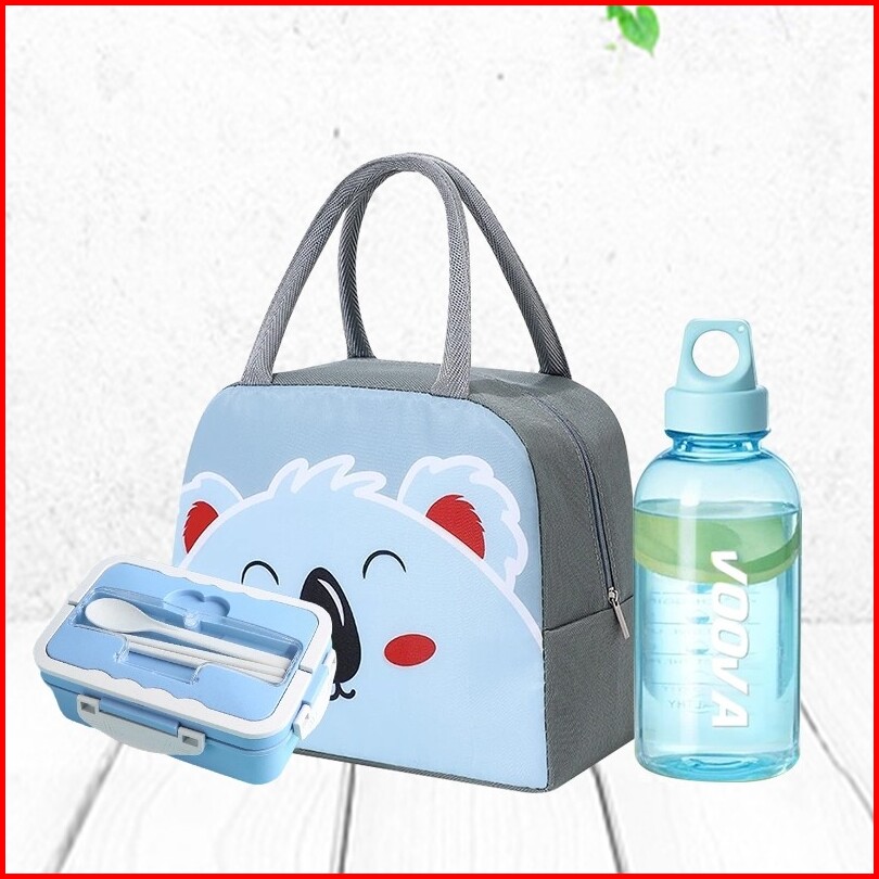 Voova Set Bekal Alat Makan Siang Paket Bekal Praktis Bundling Paket Makan Siang Kotak Bekal Tas Bekal Karakter Botol Min