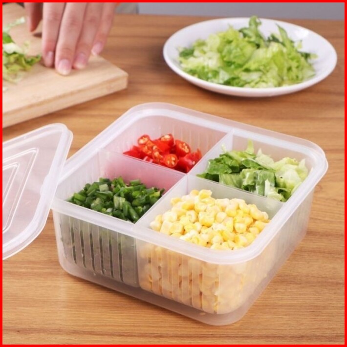 Toples Kotak Tirisan Saringan Wadah Cabai Bawang 4 Sekat Tempat Buah Sayuran Dengan Penutup Toples Set Tirisan Bawang Sa