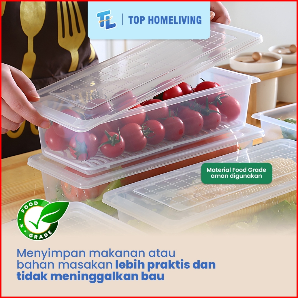 Set Isi 5 Pcs Toples Panjang Warna Warni Food Kontainer Toples Makanan Penyimpanan Daging Sayuran Buah Dengan Tirisan