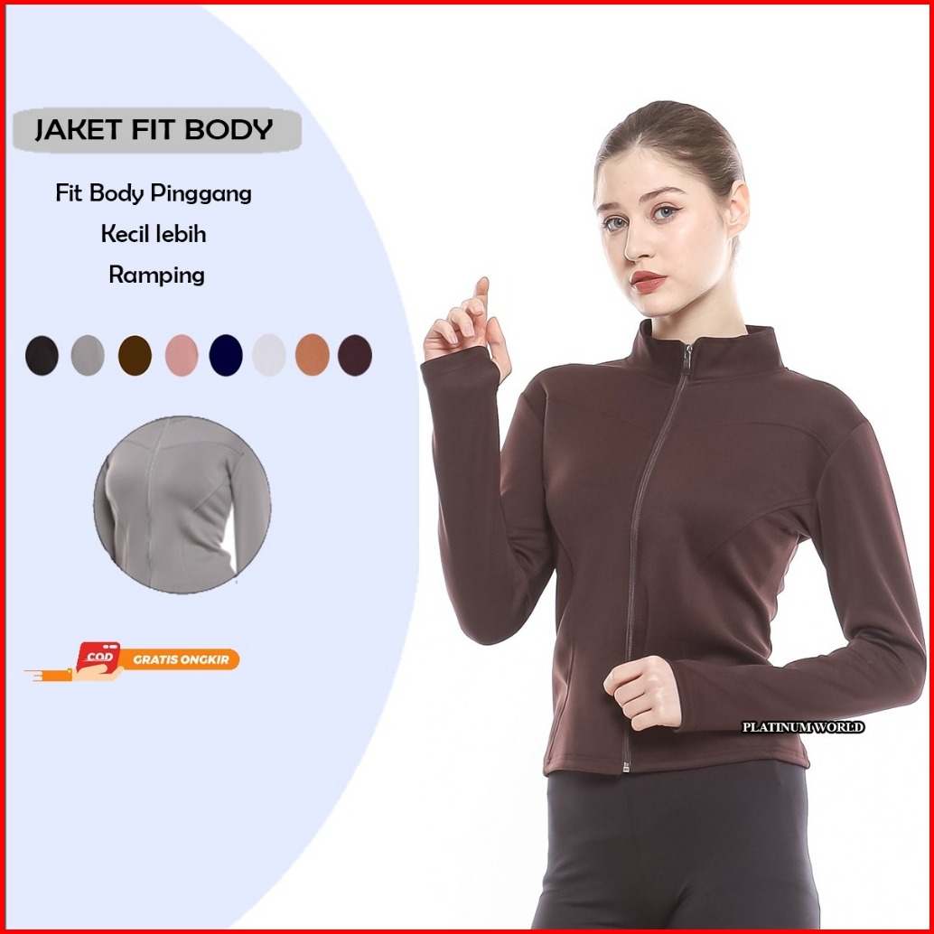 Platinum World Jaket Olahraga Lengan Panjang Fit Body Wanita Yoga Pilates Lari Gym Fitnes Coffee Premium Quality S11