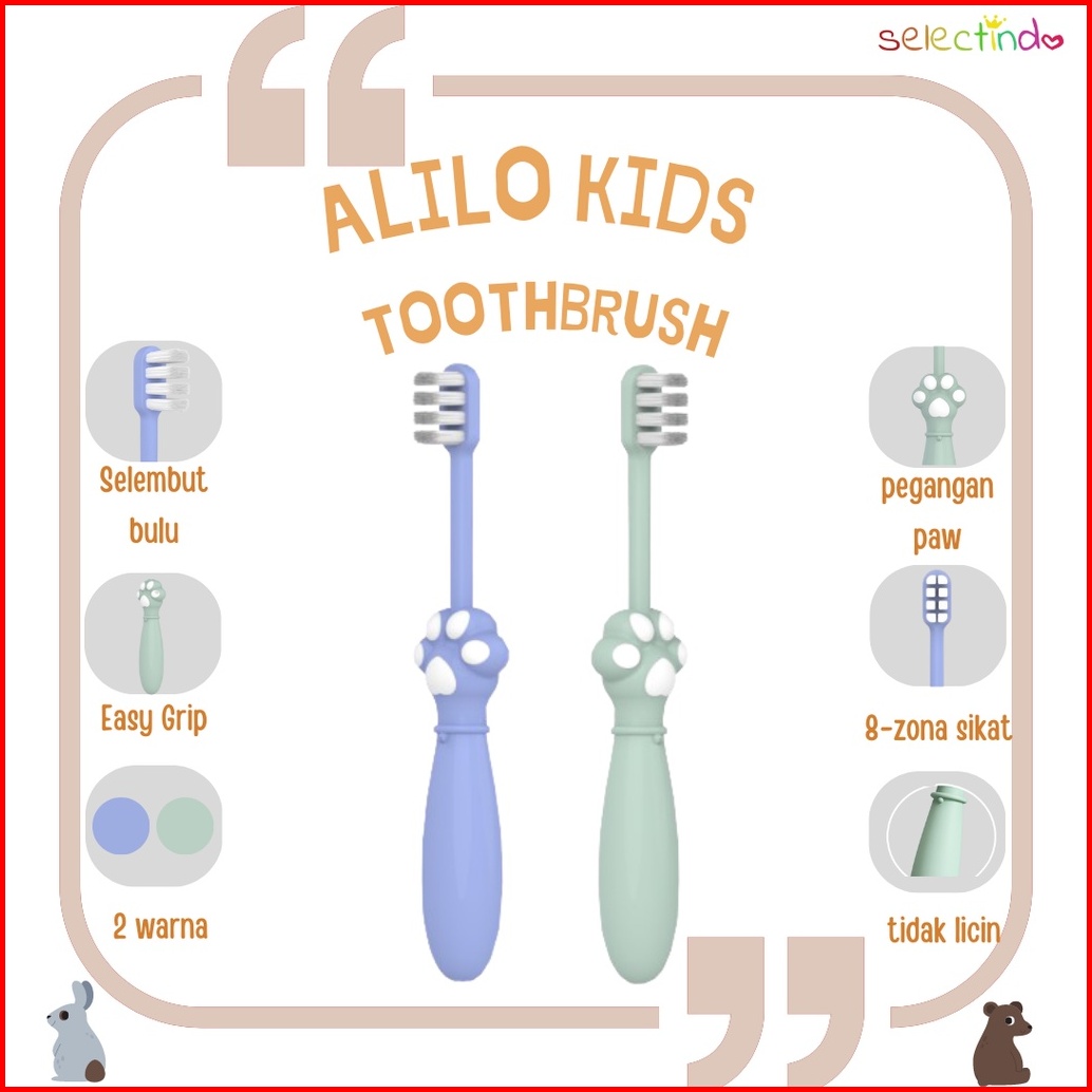 Alilo Kids Toothbrush Sikat Gigi Anak Feather Soft Silk Cute Tooth Brush Cat Paw Design