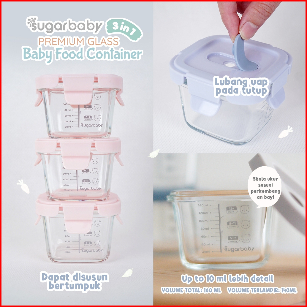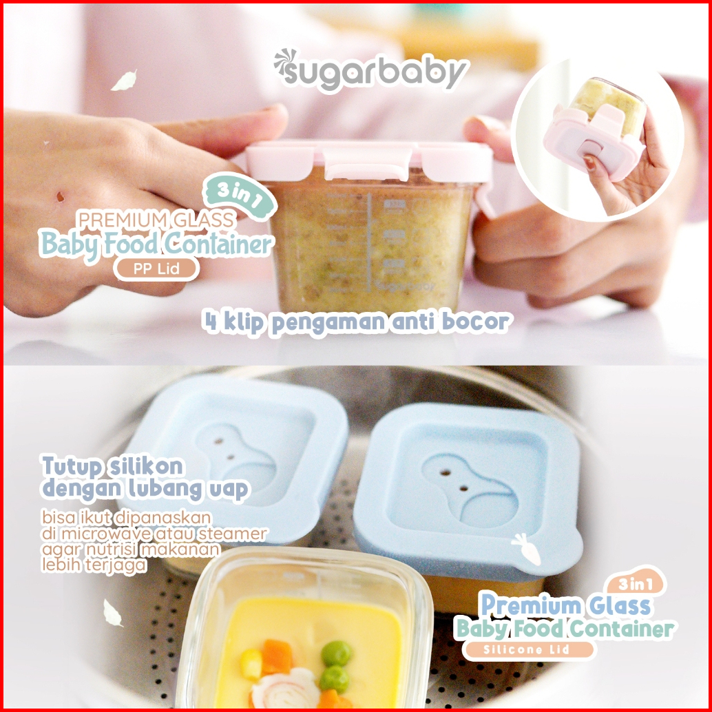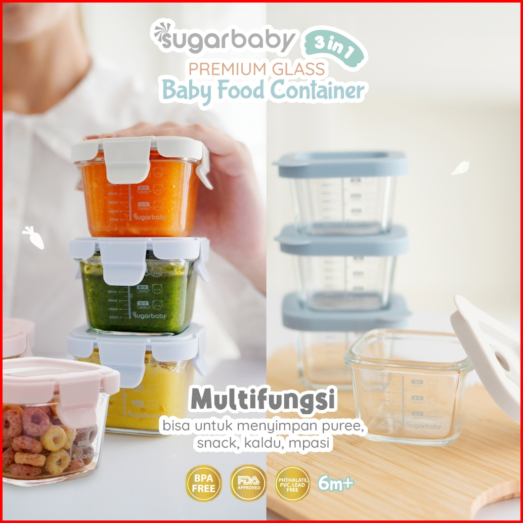 Sugarbaby Premium Glass Jar Baby Food Container 3 Pcs Bpa Free Peralatan Makan Bayi Mpasi Wadah Mangkok Bayi Silicone Li