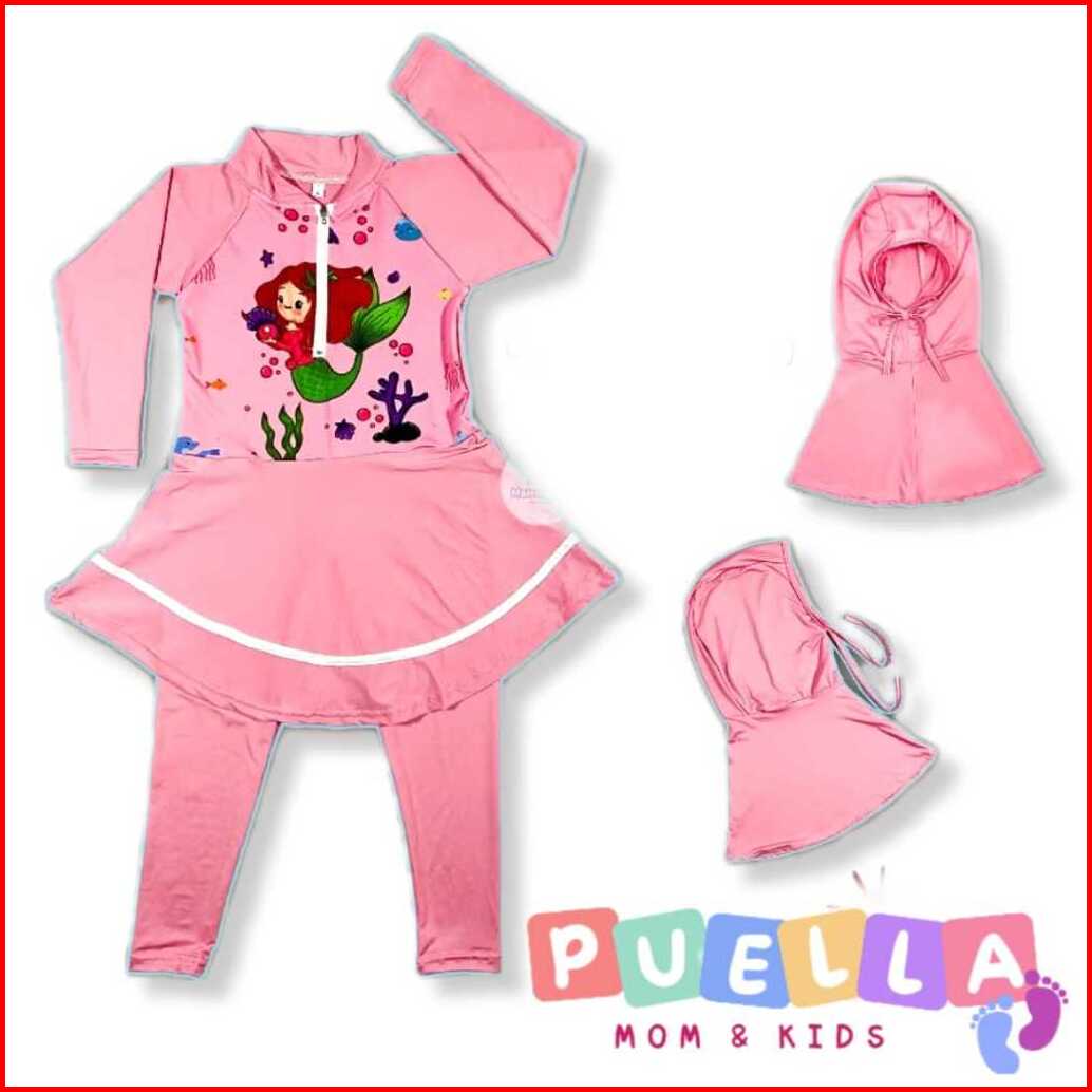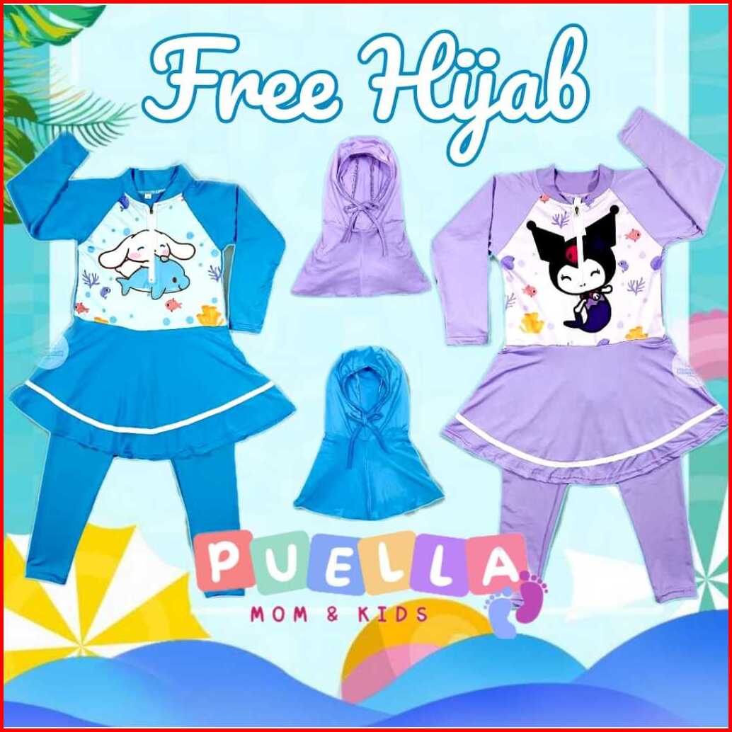 Puella Baju Renang Hijab Panjang Anak Perempuan Karakter Rok Inner Spandek Premium
